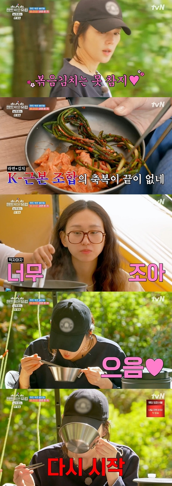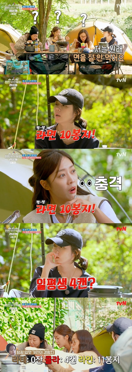 그는 "나 라면은 원래 안 먹어. 지금까지 먹은 토탈 량이 한 10봉지 될까"라고 덧붙였고, 라미란은 "그럼 그 한 봉지를 여기 와서 먹은 거네?"라며 감탄했다.