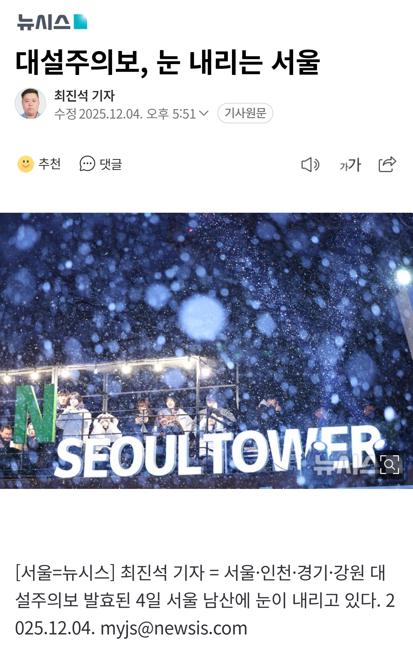 [여시뉴스데스크]대설주의보에 눈 내리는 서울 작성자열무비빔면|작성시간25.12.04|조회수25,939 목록 댓글 20 글자크기 작게가 글자크기 크게가 출처: https://naver.me/Ge4VPXex출처 : https://naver.me/Ge4VPXex 다음검색 현재 게시글 추가 기능 열기 북마크 공유하기 신고 센터로 신고 댓글 댓글 20 댓글쓰기 답글쓰기 댓글 리스트 작성자룡가 | 작성시간 25.12.04 도로 난리남ㅜ 이미지 확대 작성자따뜻한아가리카노 | 작성시간 25.12.04 내일 출근 어케 하냐고요. 작성자졸랴용 | 작성시간 25.12.04 이미지 확대 작성자러브윈즈올 | 작성시간 25.12.04 죨라 와욥 작성자쪼꼬소라빵 | 작성시간 25.12.04 강변북로 훤히 내려다보이는 아파트 사는데 이시간에 원래 뻥뚫려있는데 아직도 꽉꽉막힘.. 눈 존나싫다 댓글 전체보기