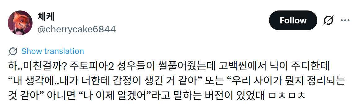 닉이 “내 생각에..내가 너한테 감정이 생긴 거 같아”