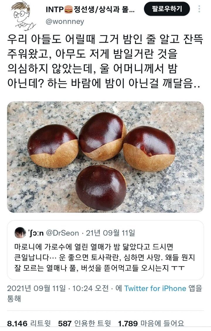 [스크랩] [흥미돋]밤처럼 생겼지만 먹으면 큰일나는 열매.jpg 작성자열빙어|작성시간25.12.05|조회수49,938 목록 댓글 37 글자크기 작게가 글자크기 크게가 출처 : 여성시대 갓죠 다음검색 스크랩 원문 : *여성시대* 차분한 20대들의 알흠다운 공간 현재 게시글 추가 기능 열기 북마크 공유하기 신고 센터로 신고 댓글 댓글 37 댓글쓰기 답글쓰기 댓글 리스트 작성자남떵모 | 작성시간 25.12.05 풍년제과 초코파이 같다 작성자장래희망베짱이 | 작성시간 25.12.05 저거 우리 동네에 많은데 껍데기 까진거 많던데..... 정력에 좋아서 그런거구나... 작성자냠뇸냥 | 작성시간 25.12.05 근데 ㅈㄴ 줍고싶게 생김 작성자페퍼민트ㅌi | 작성시간 25.12.05 헐 무슨 맛일까 작성자아기구름 | 작성시간 26.02.08 대역죄인들에게 선물하고 싶은 열매 🌰 댓글 전체보기