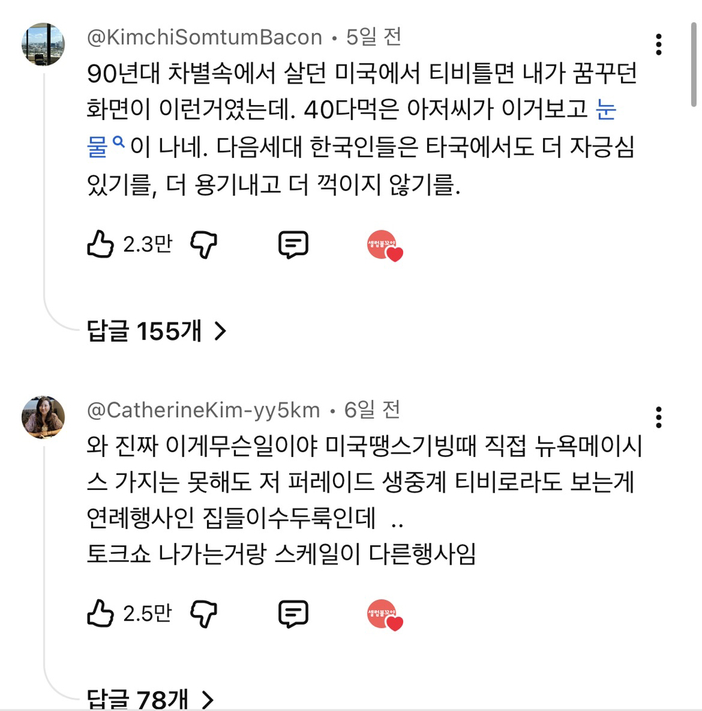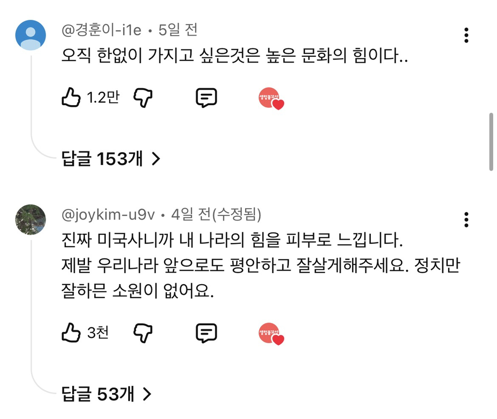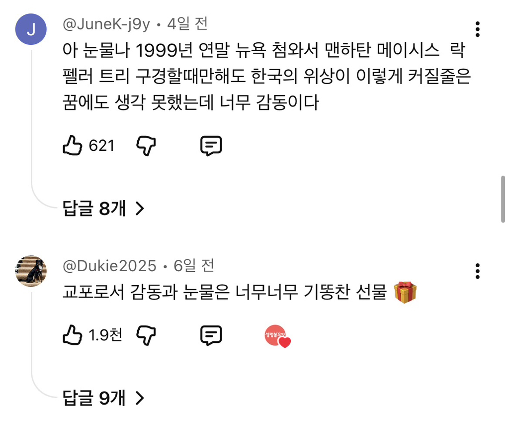 작성자후리럇차 작성시간 25.12.05 김구오빠 보고 있지 우리 절대 잊지 않아 ㅠ 진짜로 난 한국의 위상이 좋아져서 너무 너무 기뻐 한국 좋은 나라야ㅠㅠ잘 고쳐 쓰면서 계속 우리나라 사랑하자ㅠ 진짜로 외국애들 스탠스가 달라짐 진짜로