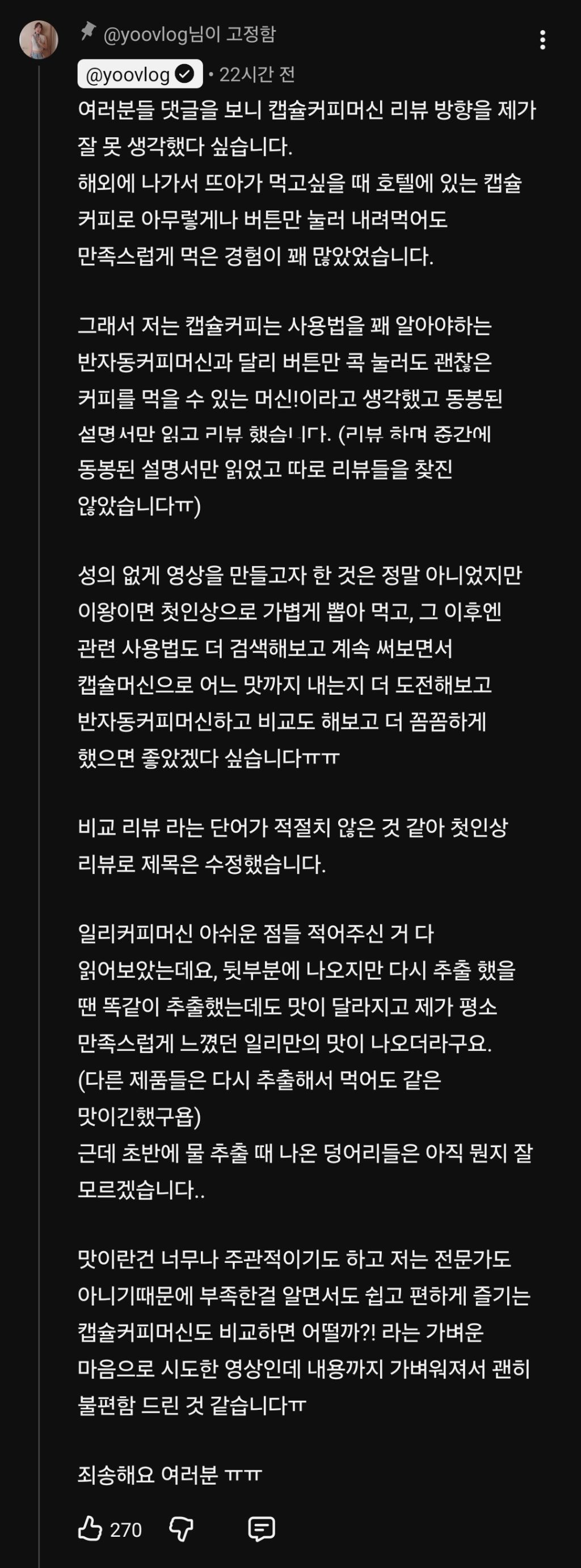 결국 사과문 댓글에 올라옴