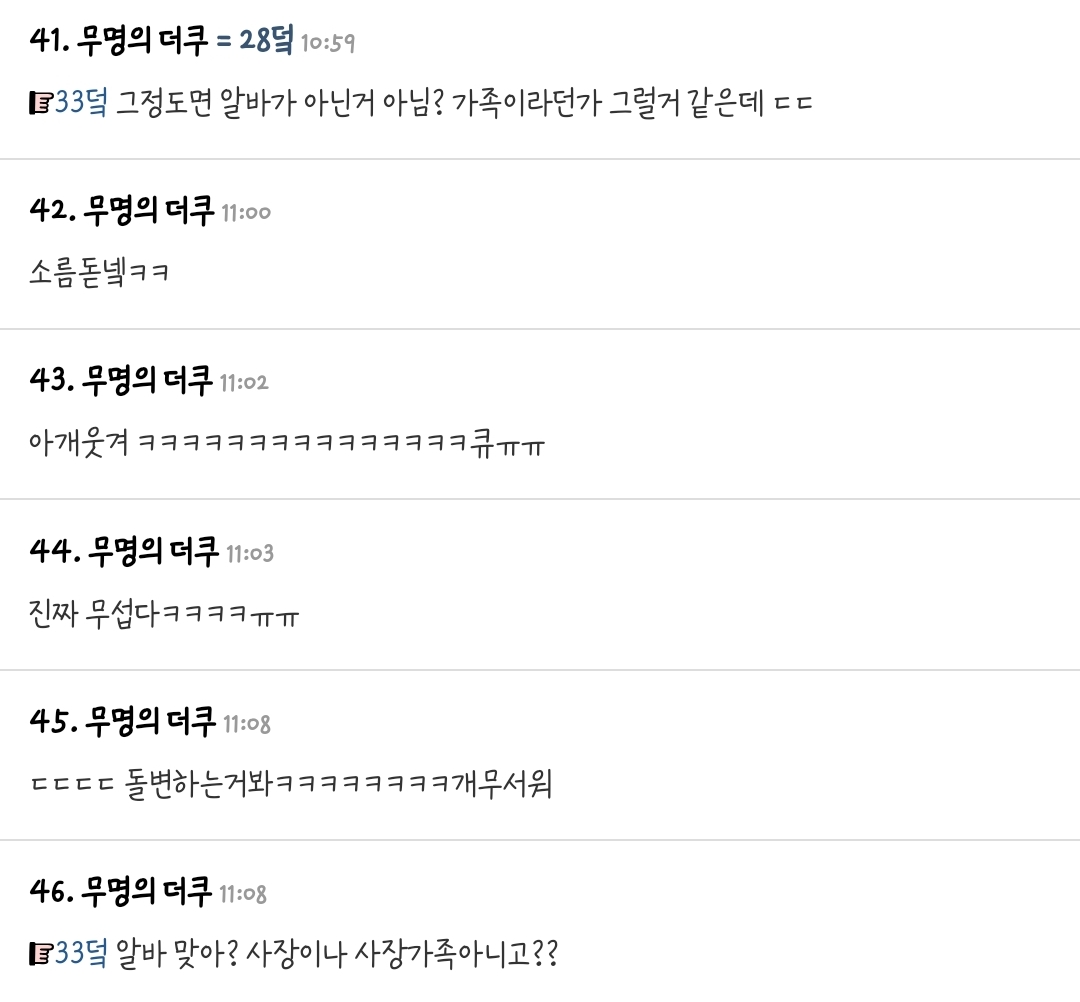 [스크랩] [흥미돋]카페에서 매우 민망한 상황이야 작성자돌연사 박물관|작성시간25.12.05|조회수62,331 목록 댓글 57 글자크기 작게가 글자크기 크게가 출처: https://theqoo.net/talk/3503171144진짜 사장 아닐까?... 다음검색 스크랩 원문 : *여성시대* 차분한 20대들의 알흠다운 공간 현재 게시글 추가 기능 열기 북마크 공유하기 신고 센터로 신고 댓글 댓글 57 댓글쓰기 답글쓰기 댓글 리스트 작성자갓땡2 | 작성시간 25.12.06 무서워ㅠㅋㅋㅋㅋㅋㅋㅋㅋ 작성자162번 | 작성시간 25.12.06 아씨 ㅋㅋㅋㄱㄱ 작성자가을아와라 | 작성시간 25.12.06 사장이겠지ㅋㅋㅋㅋㅋㅋ카페에서 일하면 무조건 알바로 보는 사람들 많아서 작성자기니대장 | 작성시간 25.12.06 아 ㅅㅂ 너무눗겨 ㅋㅋㅋㅋㅋㅋㅋㅋㅋㅋㅋㅋㅋㅋㅋㅋㅋㅋㅋㅋㅋ 작성자파란색88 | 작성시간 25.12.06 (정색) 전데요? ㄷㄷㄷㄷㄷㄷㄷㄷㄷ 댓글 전체보기