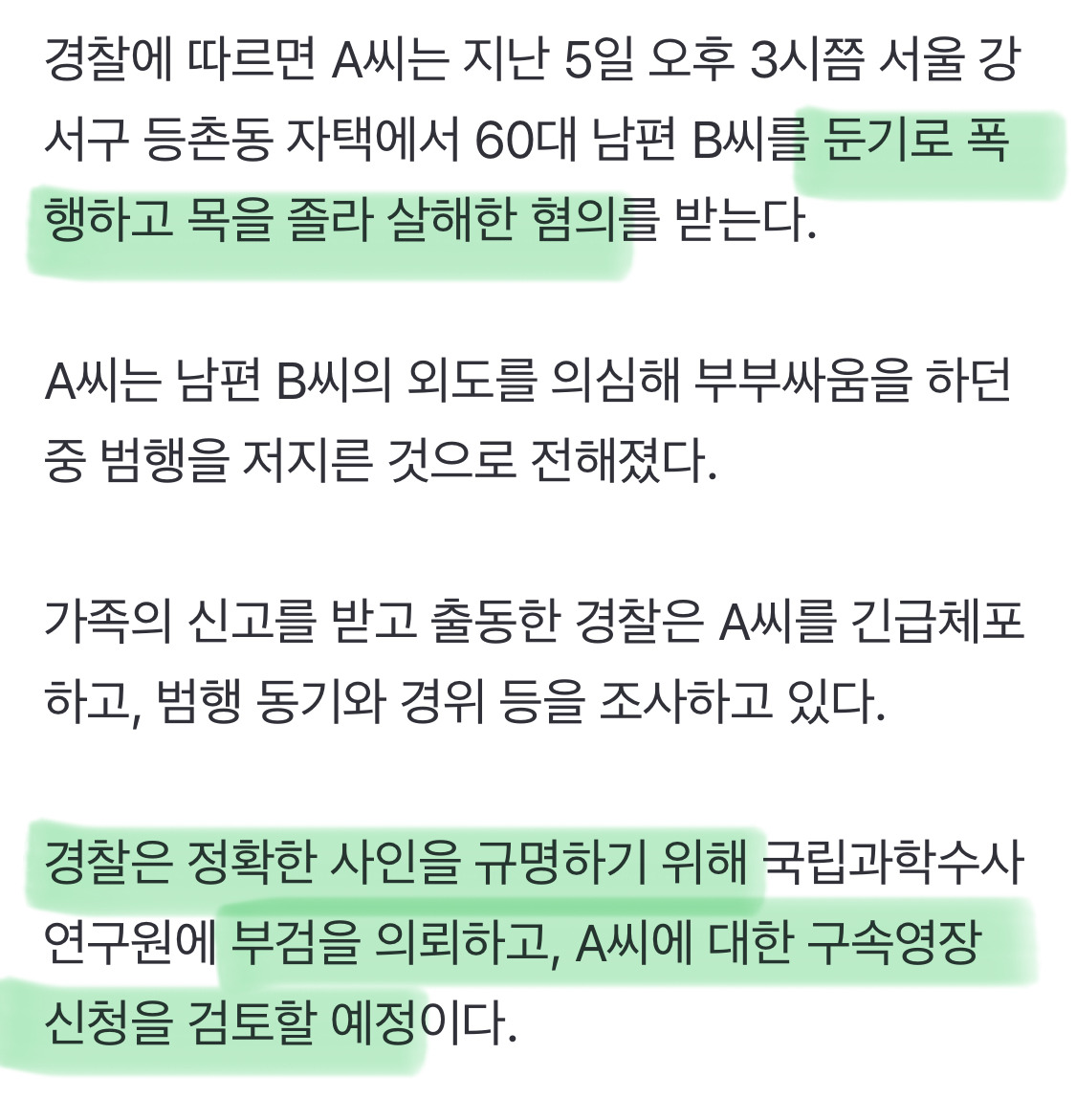 [여시뉴스데스크][단독] 외도 의심해 부부싸움하다 남편 살해한 아내, 긴급체포 작성자(본인닉네임).|작성시간25.12.06|조회수20,568 목록 댓글 13 글자크기 작게가 글자크기 크게가 출처: https://n.news.naver.com/article/018/0006178738?sid=102 다음검색 현재 게시글 추가 기능 열기 북마크 공유하기 신고 센터로 신고 댓글 댓글 13 댓글쓰기 답글쓰기 댓글 리스트 작성자두비두밥바라바라 | 작성시간 25.12.06 여자가 죽었다는 줄 알았네 뭐 이런 일로 기사까지 작성자마카룽 | 작성시간 25.12.06 외도 맞는데 내세울 증거 못만들었다고 의심이라고 하는건 아닌지? 작성자설탕영화 | 작성시간 25.12.06 외도를 왜 하냐고 작성자역카프리오 | 작성시간 25.12.06 많이 사랑하셨나보네 ㅠㅠ 작성자삼각별사줘라 | 작성시간 25.12.06 아내에게 정신적 살인을 먼저하셨네 댓글 전체보기