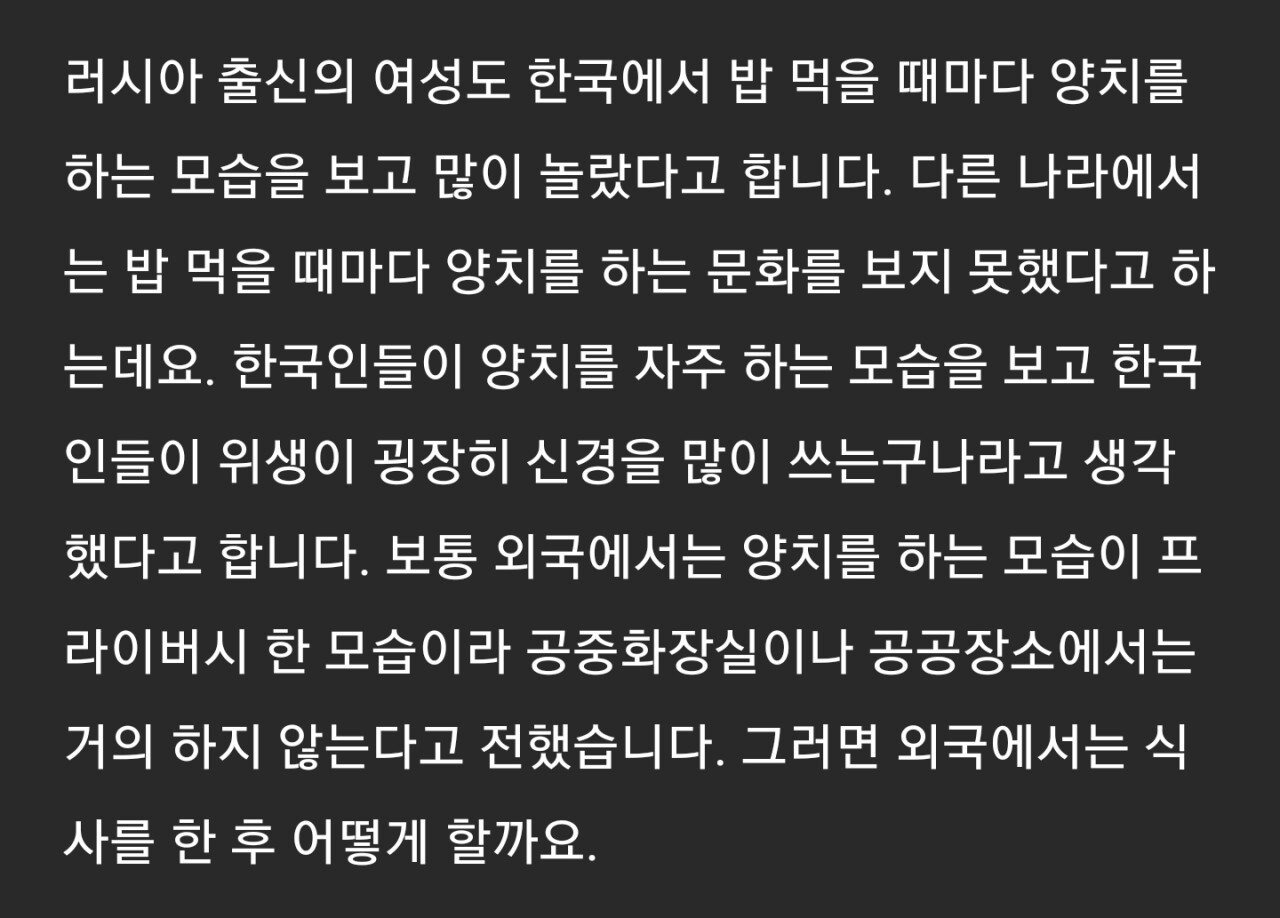 작성자피노누아 작성시간 25.12.07 뭔지알것같아 어쨋든 회사나 공공장소에서는 다 프라이빗한 행동 안보여주는게 암묵적인 룰인데 양치는 좀 그럴수잇지
