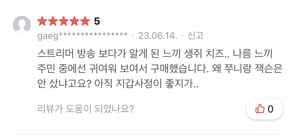 ㅋㅋ 근데 이리뷰보고 왕서방 데려오고싶어짐