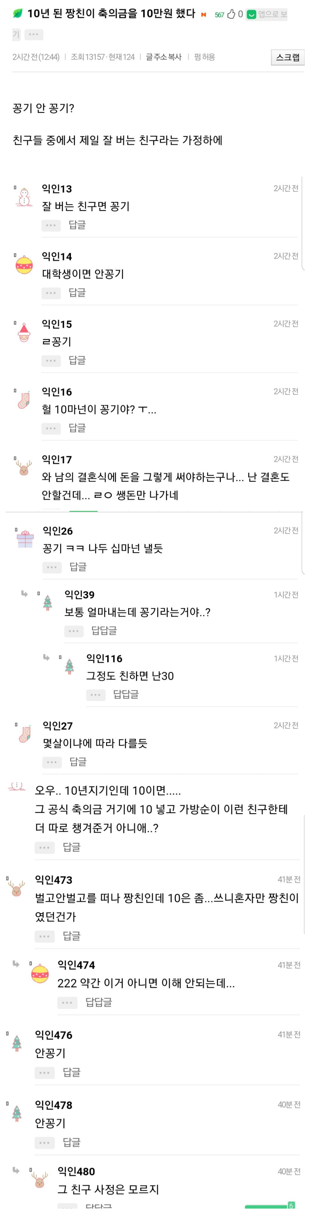 [흥미돋]10년 된 짱친이 축의금을 10만원 했다 꽁기 안꽁기? 작성자oouh|작성시간25.12.06|조회수28,107 목록 댓글 212 글자크기 작게가 글자크기 크게가 출처: 여성시대 oouh 다음검색 현재 게시글 추가 기능 열기 북마크 공유하기 신고 센터로 신고 댓글 댓글 212 댓글쓰기 답글쓰기 댓글 리스트 작성자흥칫뿡야 | 작성시간 25.12.08 10인데?? 보통 5내는데 두배냈잖어 작성자쿠시쿠시베ㅇl베 | 작성시간 25.12.08 진짜 쳐맡겨놨니? 작성자공부천재만재 | 작성시간 25.12.08 걍 찐친이라는 단어에 너무 의무부여 안했으면,,,이러나저러나 친구는 친구일뿐 작성자어쩌다 눌러버린 행복 | 작성시간 25.12.09 짱친이면 돈 많이 내야함..? 부담스러 작성자포포포포미닛 | 작성시간 25.12.09 만원만받아도 고마워해라 좀 댓글 전체보기