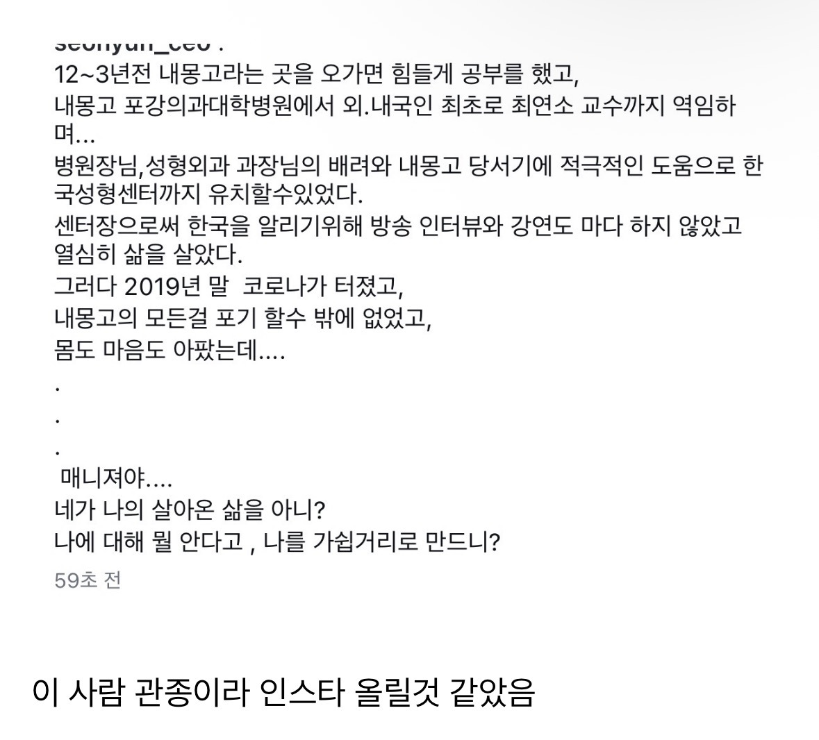 [흥미돋]박나래 주사이모 인스타 올림 작성자Sunmoonstar02|작성시간25.12.07|조회수144,595 목록 댓글 222 글자크기 작게가 글자크기 크게가 출처: https://theqoo.net/square/4019499971더쿠 - 박나래 주사이모 인스타 올림여기를 눌러 링크를 확인하세요theqoo.net+ 내몽고 = 중국 중국 당서기 도움으로 한국에 성형센터 유치? 다음검색 현재 게시글 추가 기능 열기 북마크 공유하기 신고 센터로 신고 댓글 댓글 222 댓글쓰기 답글쓰기 댓글 리스트 작성자리채리 | 작성시간 25.12.08 와 중국인인가 작성자에에에에에엣취 | 작성시간 25.12.08 말투가 왜저래?.. 작성자으앙, 버터 | 작성시간 25.12.08 중궈런이구나 작성자은행구이 | 작성시간 25.12.09 헐 중국인이구만... 작성자풍성충 | 작성시간 25.12.11 불법행위가 니 삶이랑 무슨 상관..? 늬나라로 돌아가렴 댓글 전체보기