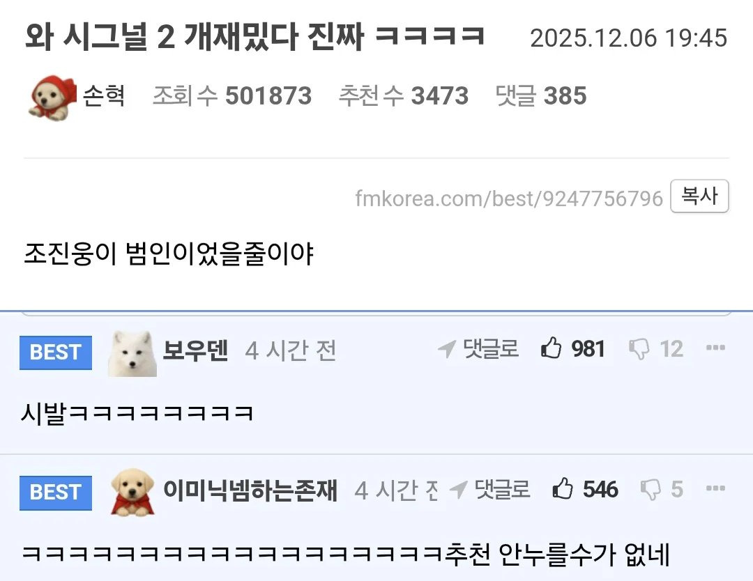 [흥미돋]와 시그널 2 개재밌다 진짜 ㅋㅋㅋ 작성자oouh|작성시간25.12.07|조회수64,989 목록 댓글 24 글자크기 작게가 글자크기 크게가 출처: 여성시대 oouh 다음검색 현재 게시글 추가 기능 열기 북마크 공유하기 신고 센터로 신고 댓글 댓글 24 댓글쓰기 답글쓰기 댓글 리스트 작성자생츄애뤼 | 작성시간 25.12.07 개같은 반전ㅋㅋㅋㅋㅋㅋㅋㅋㅋㅋㅋㅋㅋㅋㅋㅋㅋㅋㅋㅋㅋㅋㅋㅋ 작성자붙잡아야지 잃어가던 것 | 작성시간 25.12.07 ㅋㅋㅋㅋㅋㅋㅋㅋㅋㅋㅋㅋㅋㅋㅋㅋㅋㅋㅋ 작성자깜짜링 | 작성시간 25.12.07 역대급반전ㅋㅋㅋㅋ 안웃겨 ㅅㅂ 작성자세인트 엑소시스트 | 작성시간 25.12.07 역시 드라마가 현실 못 따라가 작성자그러시군요 | 작성시간 25.12.07 샤갈ㅋㅋㅋ 댓글 전체보기
