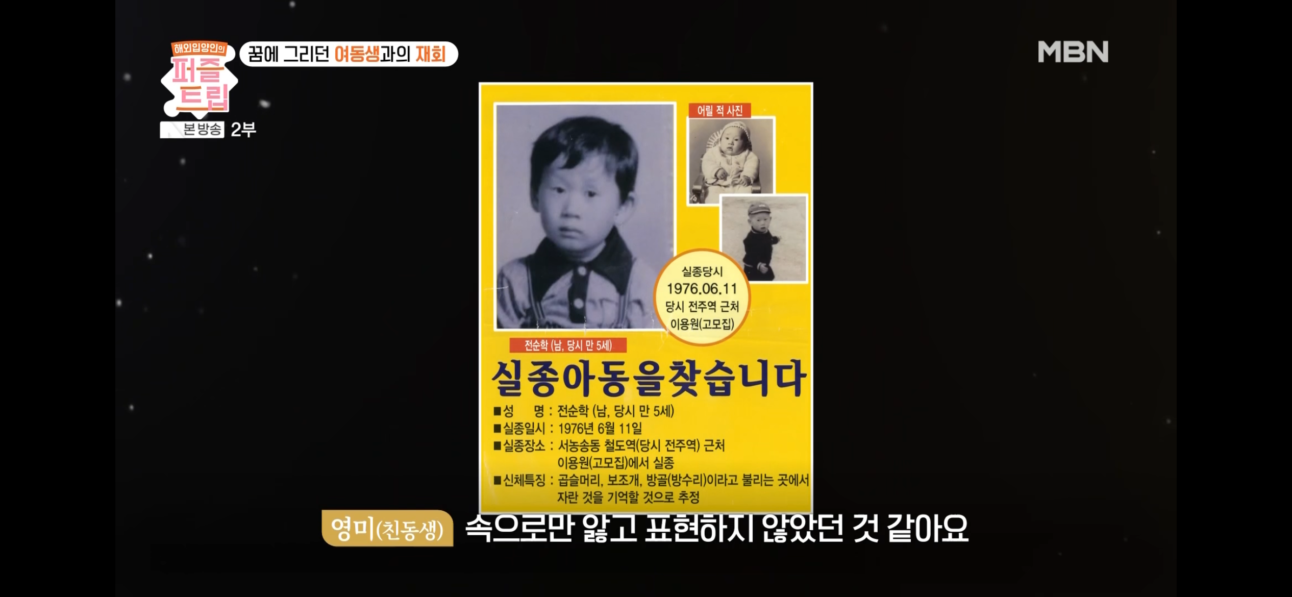 (내 생각엔 부모님말고 실종당시 보육원에 데려간 사람들 기억하는듯)