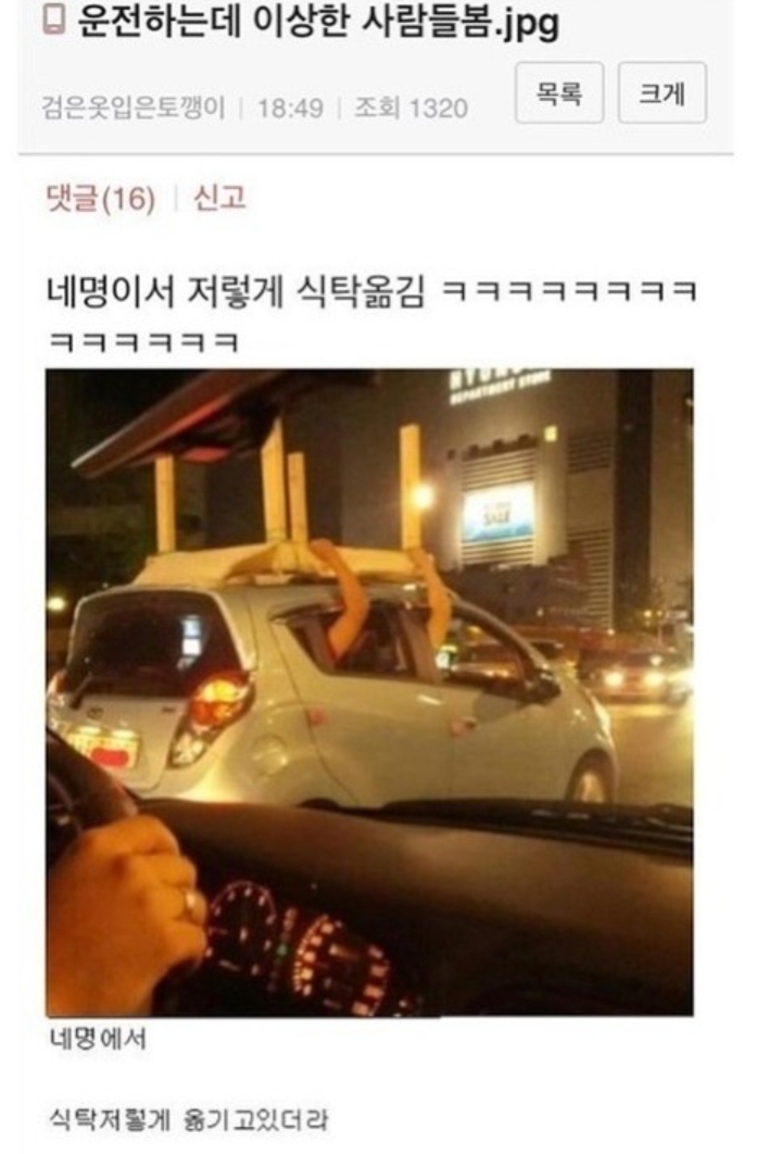 작성자마카룽 작성시간 25.12.07 아ㅋㅋㅋㅋ근데 생각보다 있어 저거말고도 창문이나 트렁크 열고 행거봉이나 장 같은거 삐져나온채로 달리는 것도 봄ㅋㅋㅋㅋㅋㅋㅋㅋㅋ