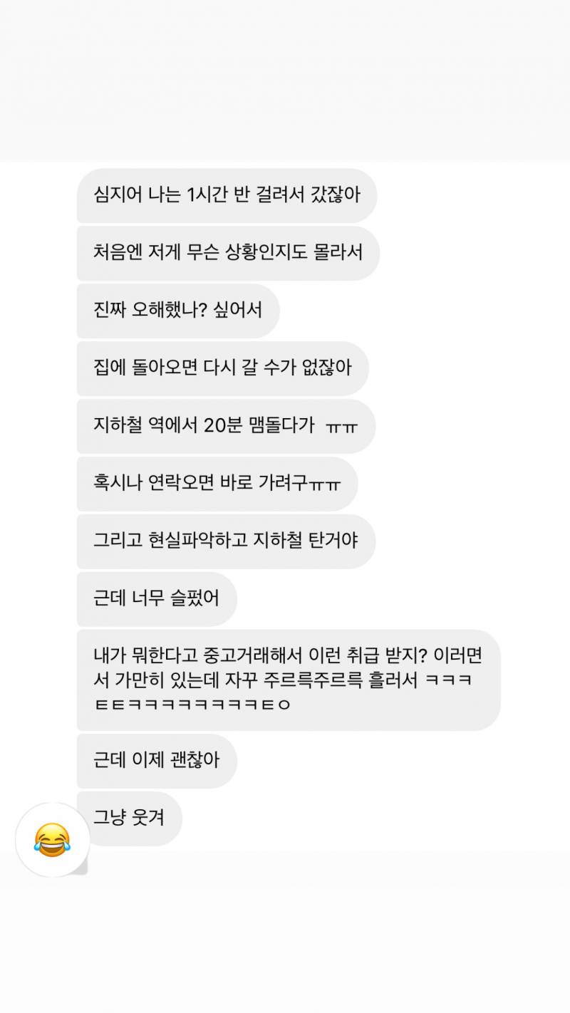 친구가 운 이유는 퇴근시간에 지하철 2번에 버스 1번 타고 간거라서 서러웠대ㅇㅇ