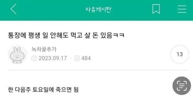 [스크랩] [흥미돋]통장에 평생 일 안해도 먹고 살 돈 있음 ㅋㅋ 작성자flflf|작성시간25.12.08|조회수83,485 목록 댓글 21 글자크기 작게가 글자크기 크게가 출처: 여성시대 오레오오즈의마법사 https://x.com/bighwanjang1/status/1859500474061480444?t=U2li6Xce_KqvXCmVKoXeXg&s=19 다음검색 스크랩 원문 : *여성시대* 차분한 20대들의 알흠다운 공간 현재 게시글 추가 기능 열기 북마크 공유하기 신고 센터로 신고 댓글 댓글 21 댓글쓰기 답글쓰기 댓글 리스트 작성자2025년토익800 | 작성시간 25.12.08 ㅋㅋㅋㅋㅋㅋㅋㅋㅋㅋㅋㅋㅋㅋㅋㅋ 작성자지구 여행자 | 작성시간 25.12.08 1월1일에 다이브 해야겟다 ^^ 작성자작심 1일러 | 작성시간 25.12.08 ㅋㅋㅋㅋㅋㅋㅋㅋㅋㅋㅋㅋㅋ 작성자더버유 | 작성시간 25.12.08 너무웃겨ㅠ 작성자쿄냥이 | 작성시간 25.12.08 오케이 죽을게요 댓글 전체보기