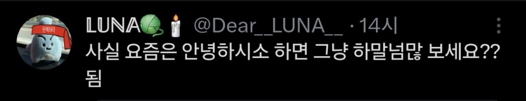 작성자매기심슨 작성시간 25.12.08 보통 안녕이라는 단어도 안쓴다곸ㅋㅋ 왔나? 밥은? 이러짘ㅋㅋㅋㅋㅋ 오히려 첫만남이니 안녕하시소 하면 웃기고 귀엽고 하말넘많 구독자로 동질감 들듯ㅋㅋㅋㅋㅋ(여자만)