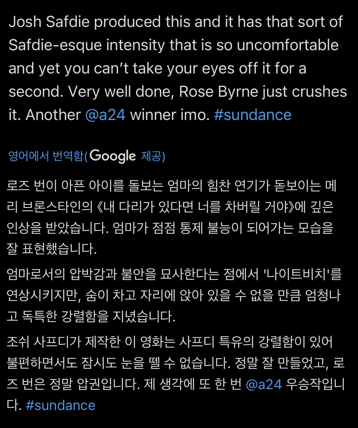 평 보면 언컷 젬스, 이레이저헤드 이런 분위기라고 함