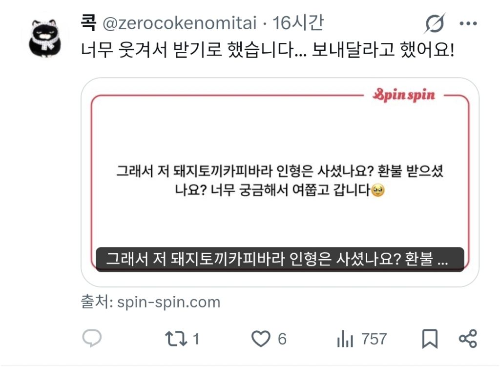 [흥미돋]돼지토끼바라 작성자내치석치태다사라져라뿅|작성시간25.12.09|조회수21,296 목록 댓글 11 글자크기 작게가 글자크기 크게가 출처:https://x.com/zerocokenomitai/status/1997849043888967942?s=20+후기 다음검색 현재 게시글 추가 기능 열기 북마크 공유하기 신고 센터로 신고 댓글 댓글 11 댓글쓰기 답글쓰기 댓글 리스트 작성자댇댇굳 | 작성시간 25.12.09 그와중에 정중해ㅋㅋㅋㅋㅋㅋ 작성자암냠먐콘 | 작성시간 25.12.09 아 ㅈㄴ웃겨 ㅋㅋㅋ 작성자띿놀이중독자 | 작성시간 25.12.09 ㅠㅠㅋㅋㅋㅋㅋㅋㅋ 근데 귀여워 작성자벆뚜벆뚜 | 작성시간 25.12.09 진짜 웃기게 생겼다 작성자엡앤플로우 | 작성시간 25.12.09 아너무웃기다 ㅋㅋㅋㅋㅋ 귀여워 댓글 전체보기