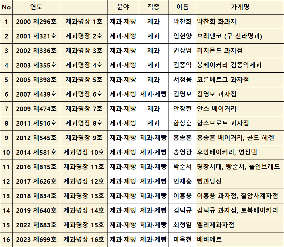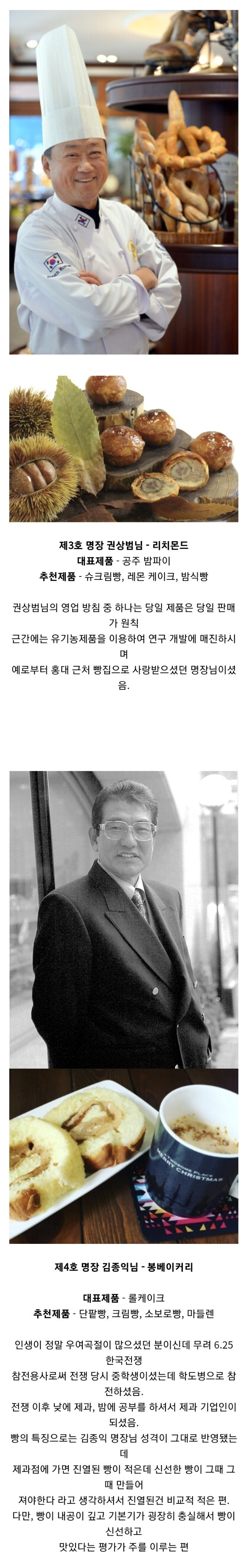 호남지역에서 최초로 제과제빵 명장이 되셨고 어릴때 가난해서 친척이 운영하는 빵집에서 기술을 처음 배운게 지금까지 오시게 됐다 함.