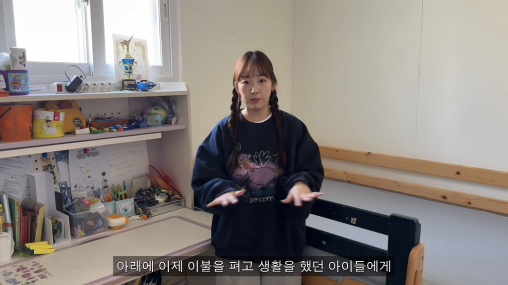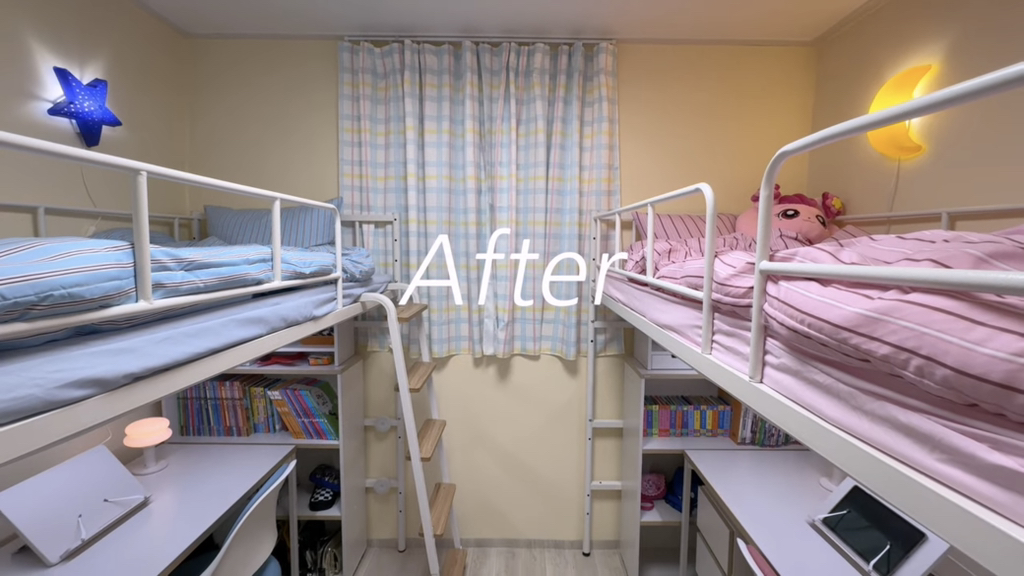 여건이 안 돼서 자녀 둘이 같은 방을 쓰는 중임ㅜ