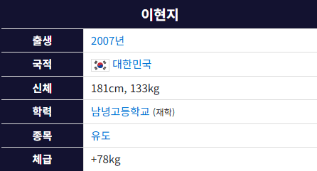현재 여자 78kg+ 최중량급 세계랭킹 1등은 한국의 이현지 선수다.