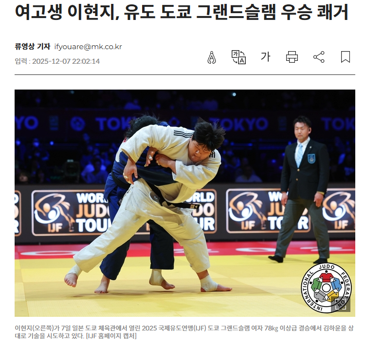 특히 2일 전 국제 유도연맹 도쿄 그랜드슬램 대회에서