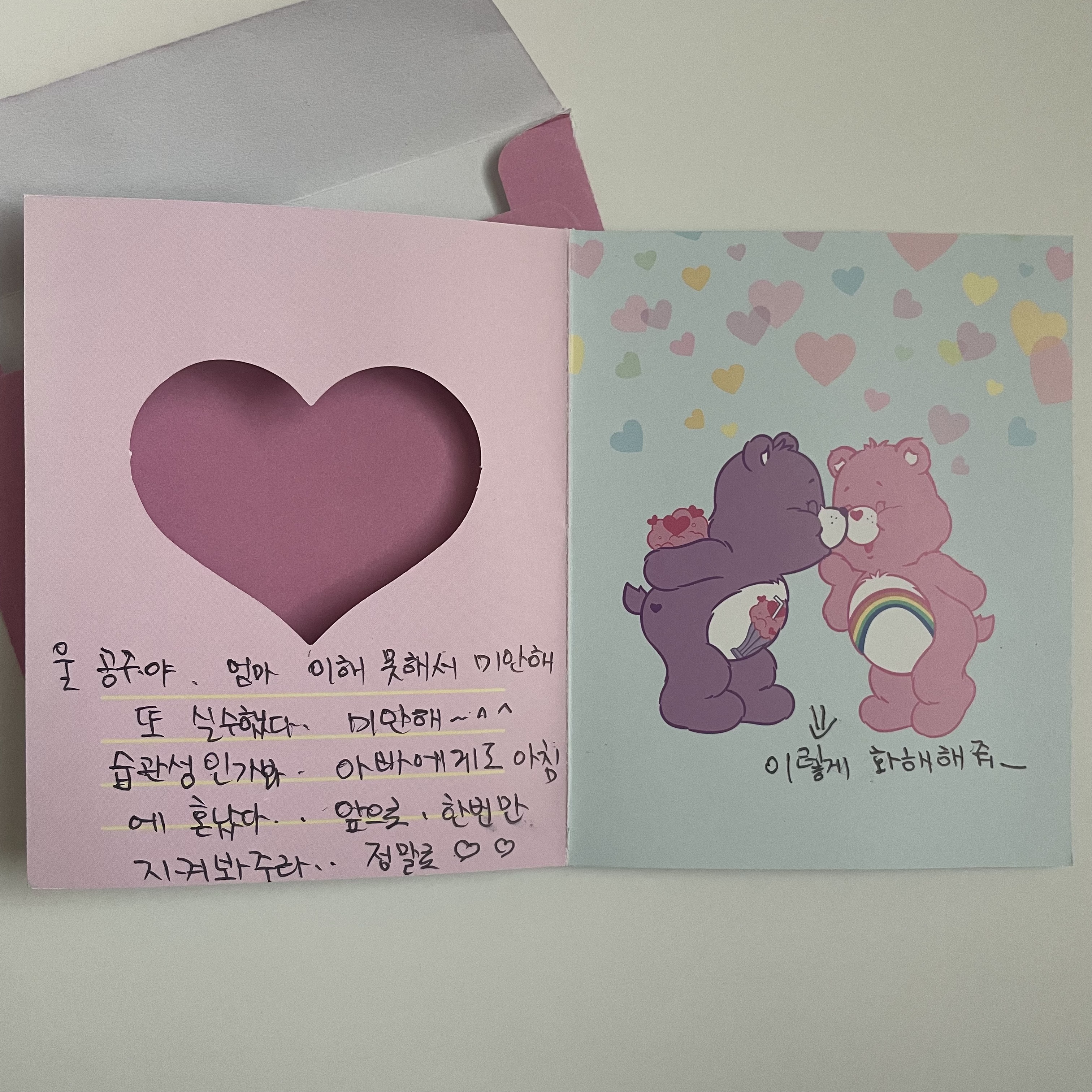 아까 아침에 잠깐 깼을 때 갑자기 편지 줌 ㅋㅋㅋ