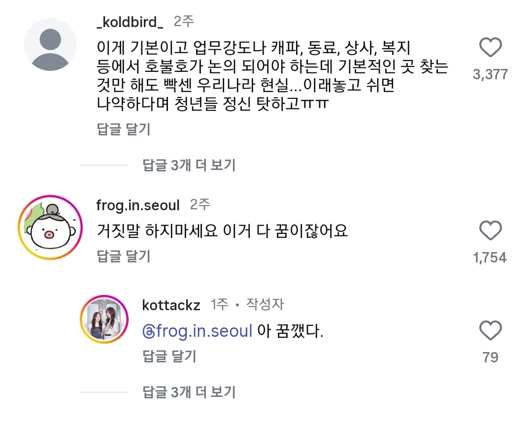 작성자A n t i f r e e z e 작성시간 25.12.10 나 신입인데 저 회사얘기가 내얘기라면.. ㅠㅠㅅㅂ 우리회사는 장기근무자 빼고 다나가서그럼