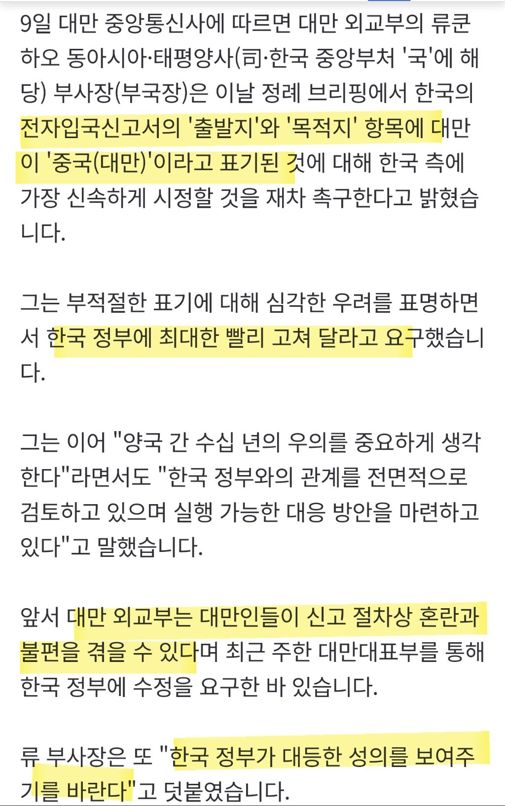 대만 관광객들이 직접 대만 당국에 민원제기
