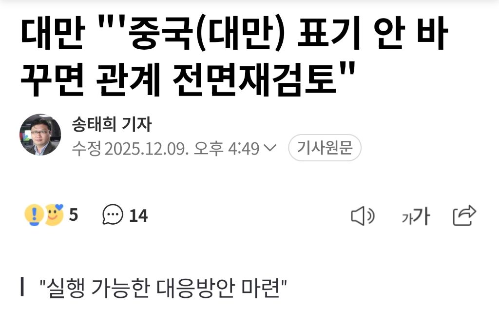 "중화민국으로 수정 촉구"