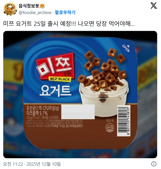 [흥미돋]전국의 먹짱에게 알립니다 미쯔 요거트 출시 작성자귤토끼이|작성시간25.12.10|조회수21,651 목록 댓글 24 글자크기 작게가 글자크기 크게가 출처: https://theqoo.net/square/4023383594https://x.com/foodie_archive/status/1998579049288143057?s=20 다음검색 현재 게시글 추가 기능 열기 북마크 공유하기 신고 센터로 신고 댓글 댓글 24 댓글쓰기 답글쓰기 댓글 리스트 작성자적당히해라 | 작성시간 25.12.10 미쯔시리얼? 먹어봣능데 별로엿슴 ㅜ 작성자오래오래또래 | 작성시간 25.12.10 나이 30대에 1억어때ㅠ?? 유산균말야 작성자빼빼로를똑 | 작성시간 25.12.10 허거덩 작성자피핑이 | 작성시간 25.12.10 넌 뒤졋어 작성자머니머니해도뭐니 | 작성시간 25.12.10 돈벌자신있나보네 댓글 전체보기