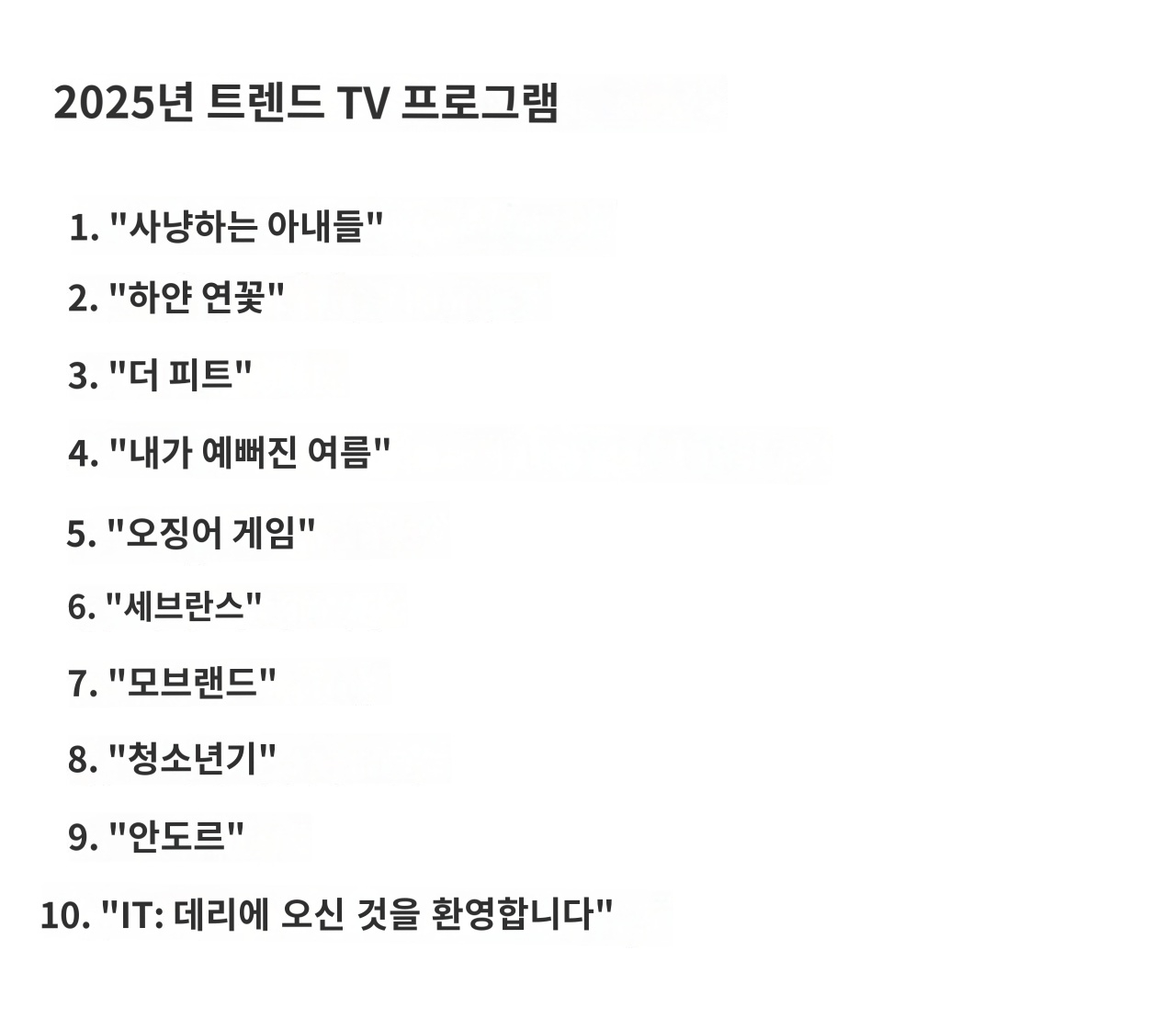 [가장 많이 검색된 tv쇼(드라마) 순위]