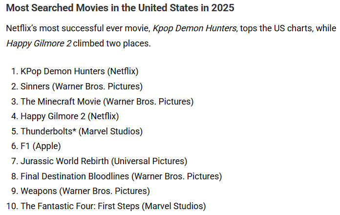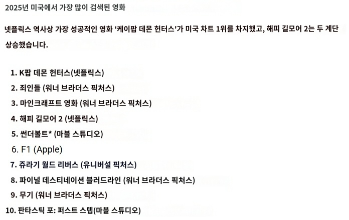 [미국에서 가장 많이 검색된 영화순위]