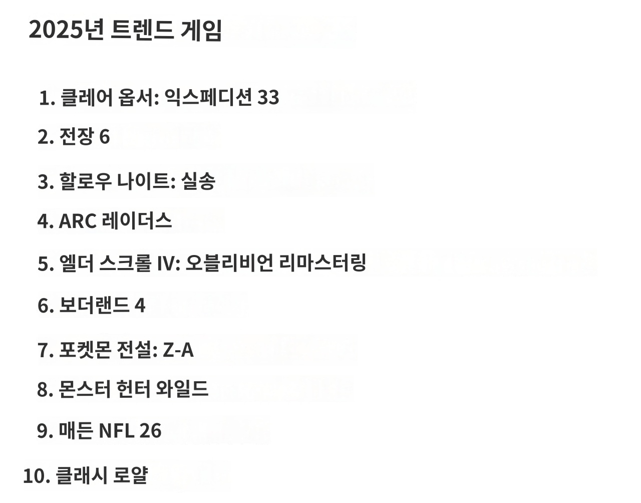 [가장 많이 검색된 게임 순위]