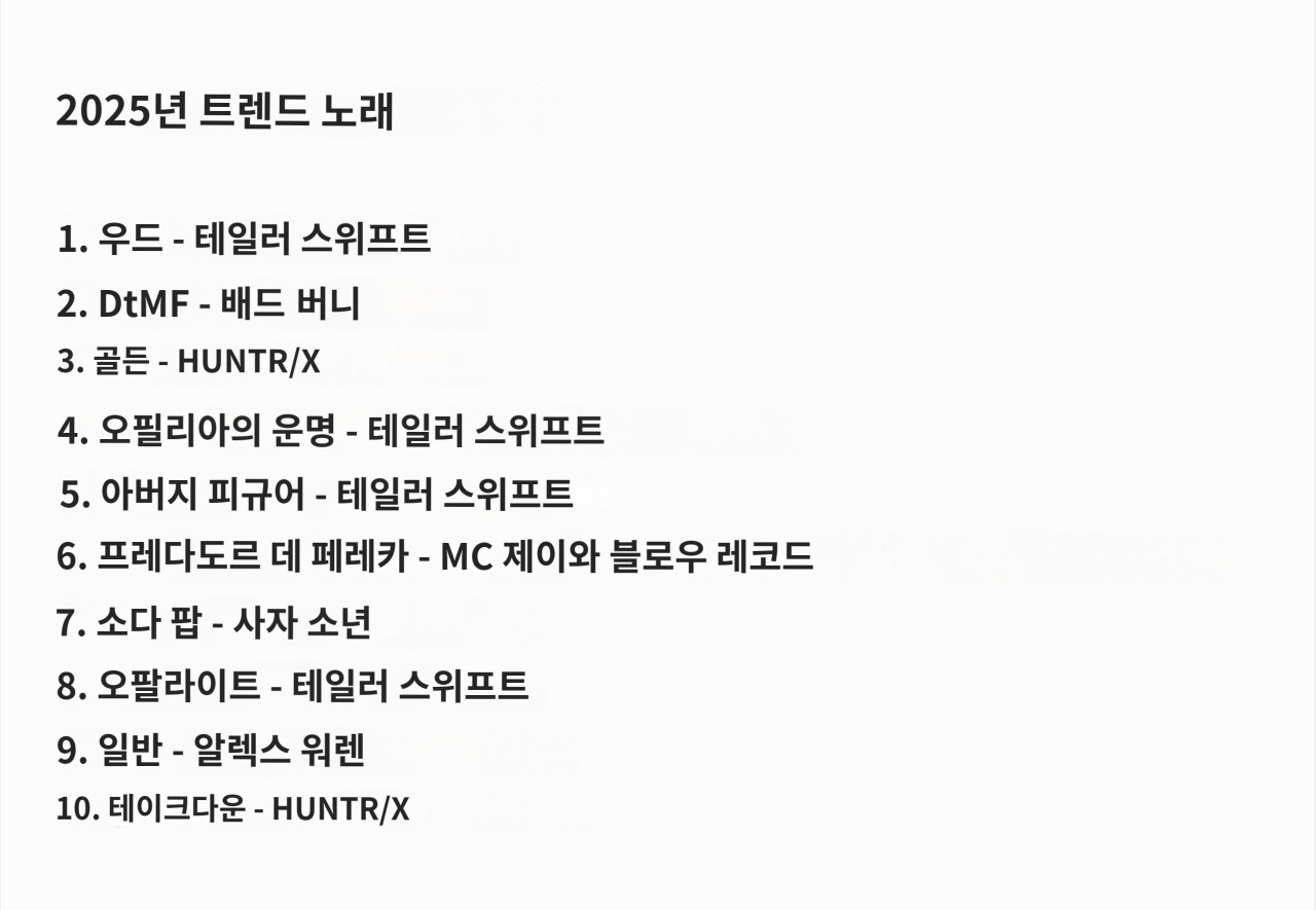 [가장 많이 검색된 노래 순위]