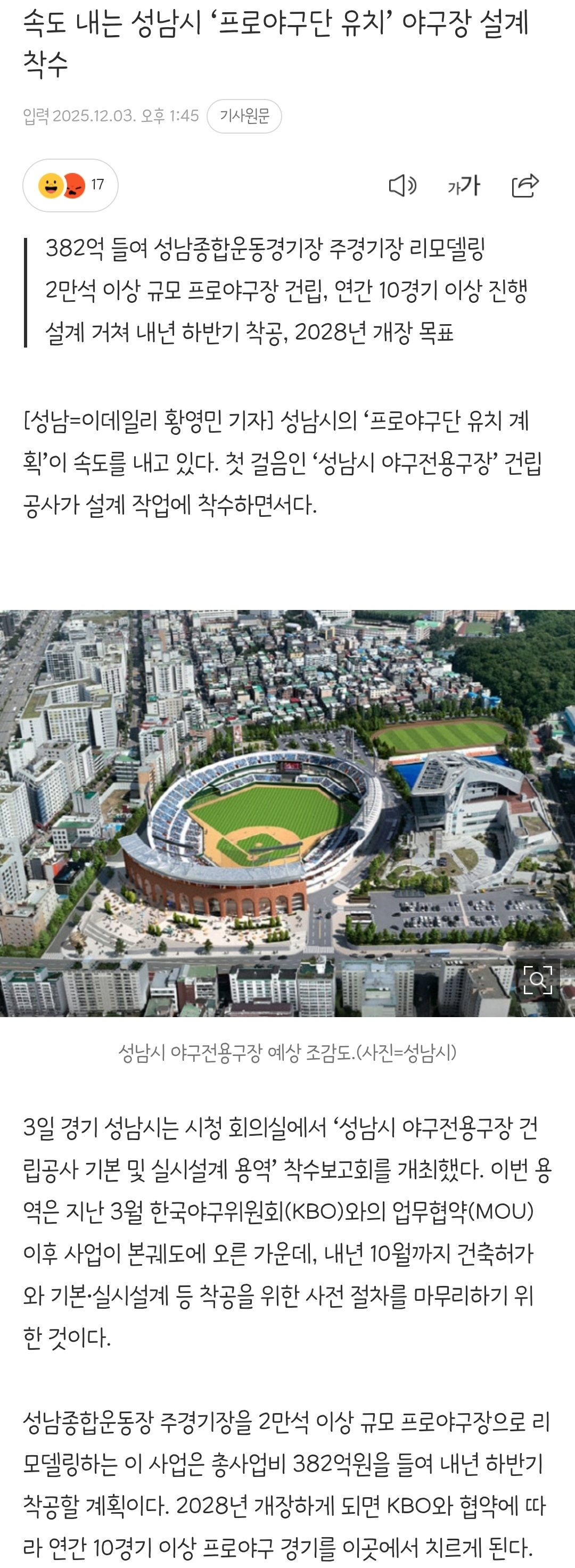 작성자펩시제로최고 작성시간 25.12.10 아근데 저기 저렇게 확장해도 타 구장에 비해 좁고