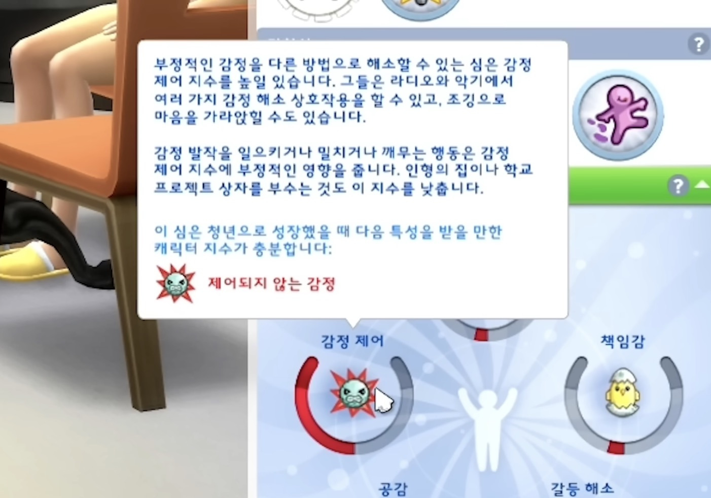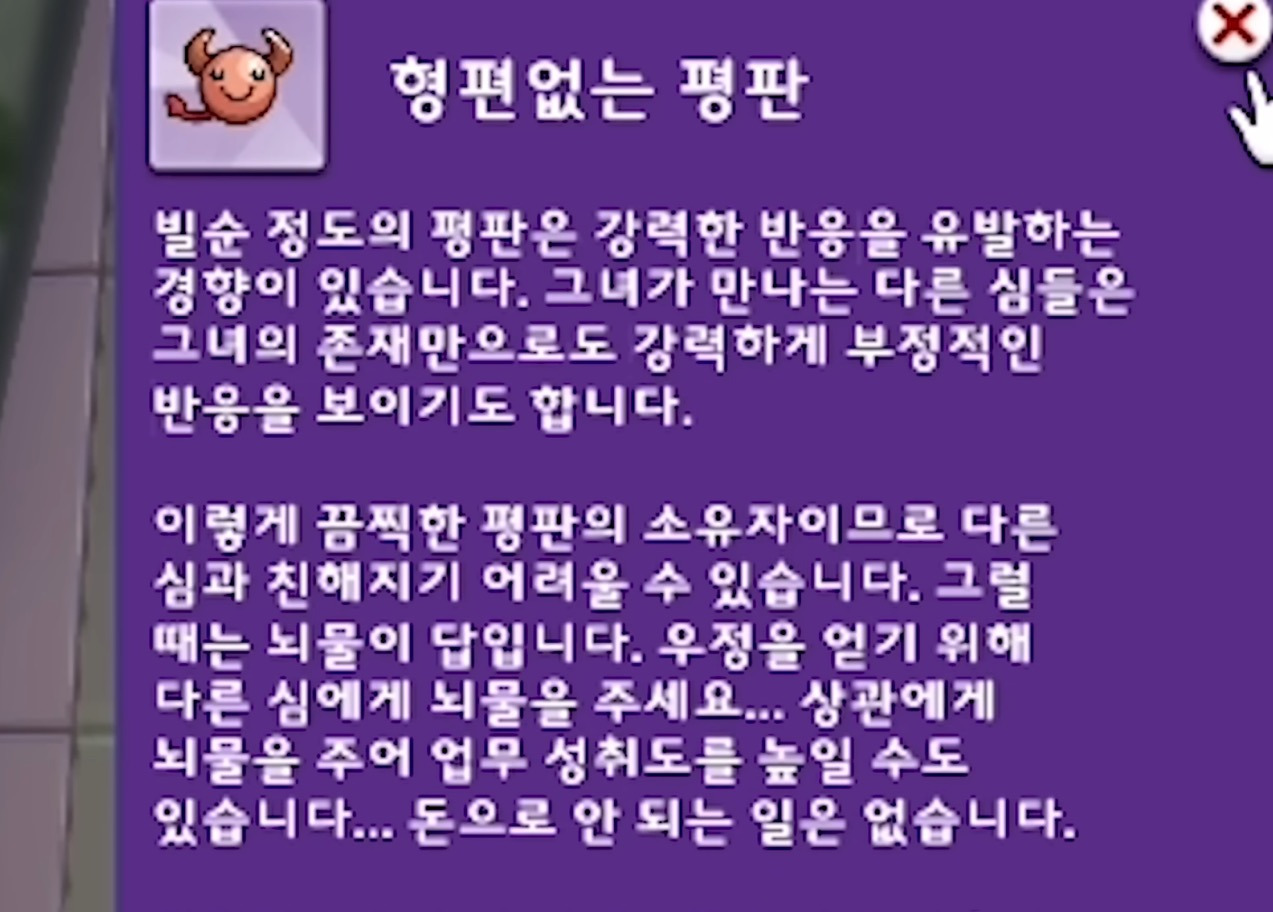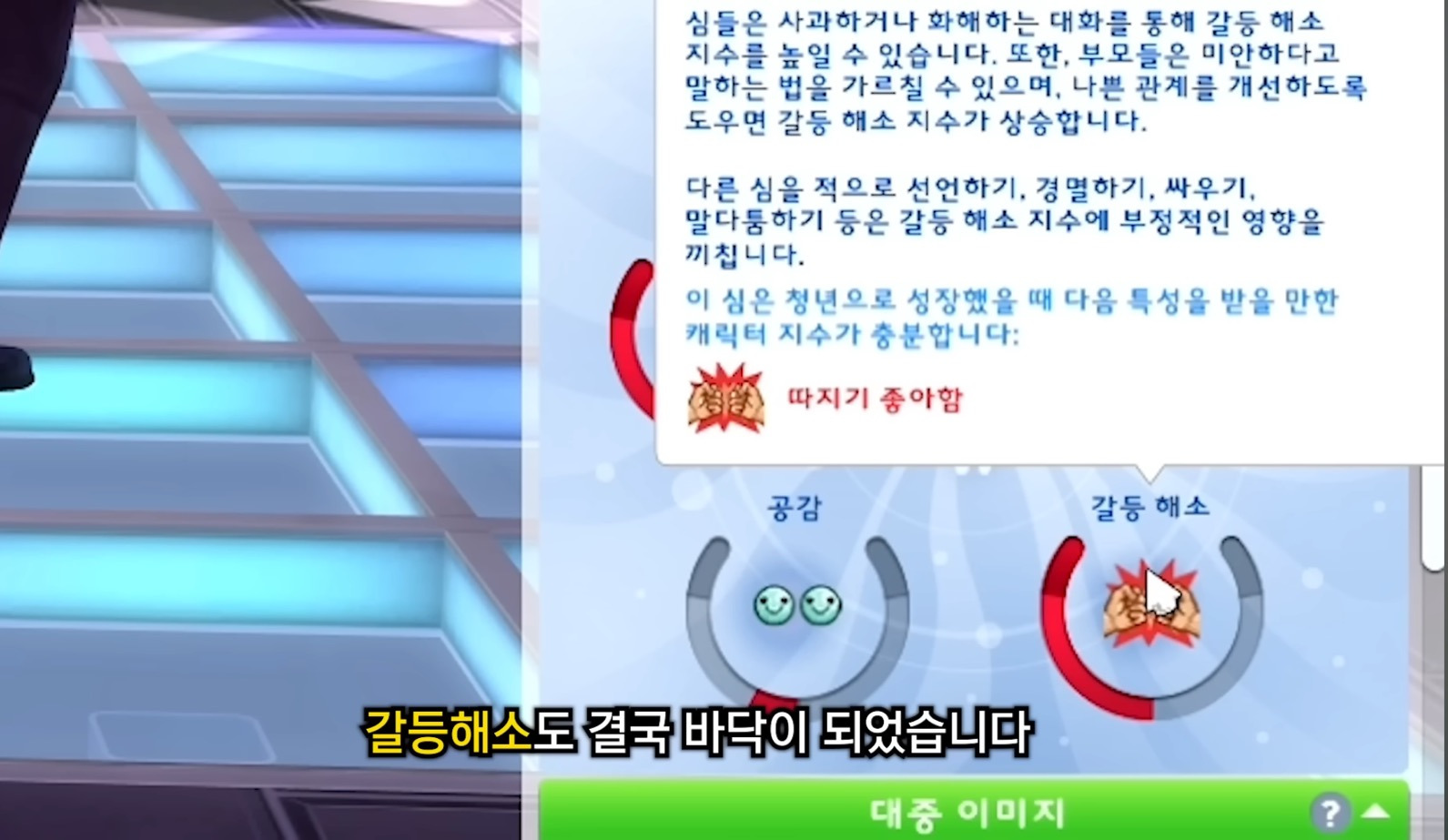 심즈에서 아직 성인이 되지 않은 심들은 캐릭터지수가 있는데 얘네가 어느쪽에 기우느냐에 따라 성인이 되면 얻는 성격이 달라짐