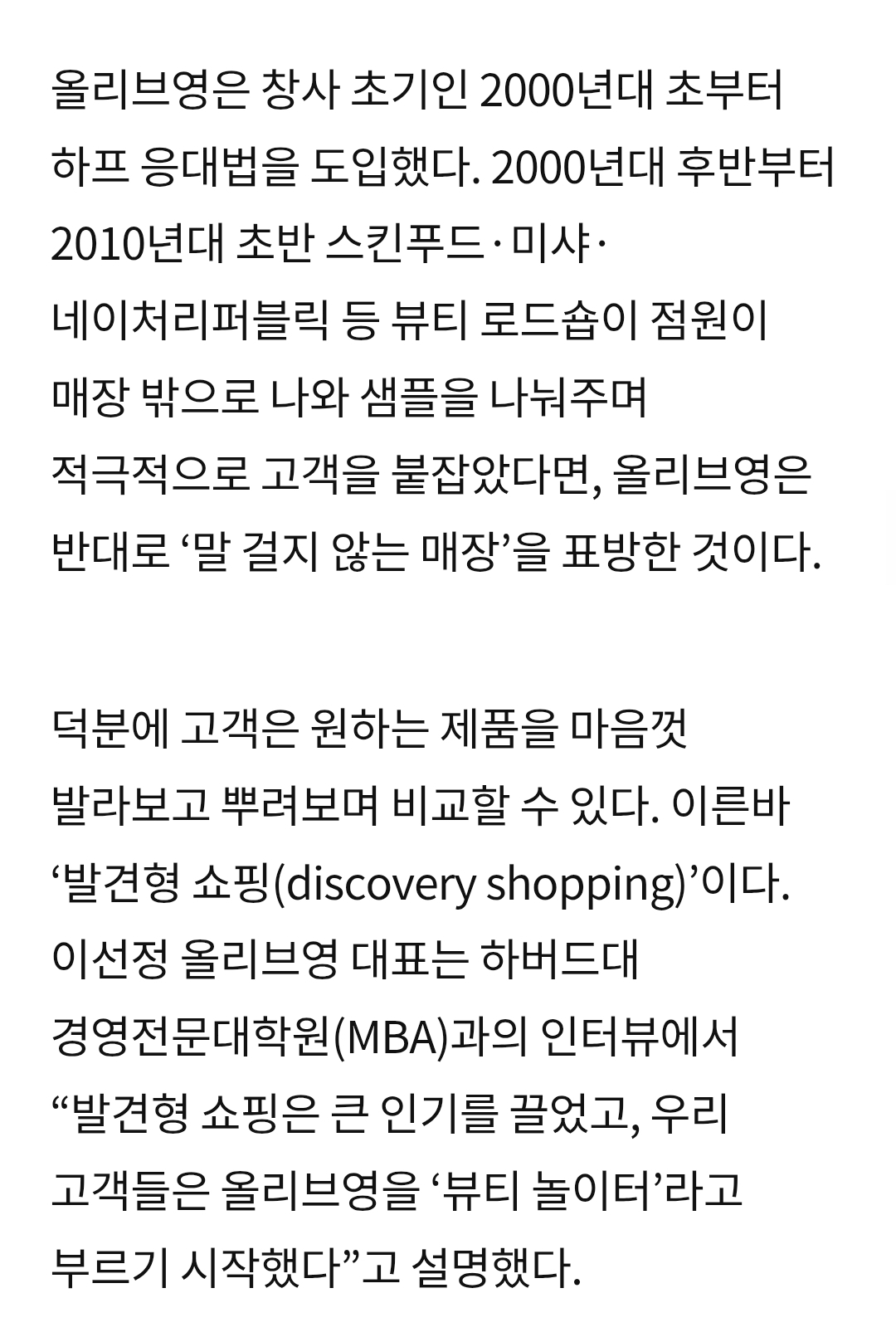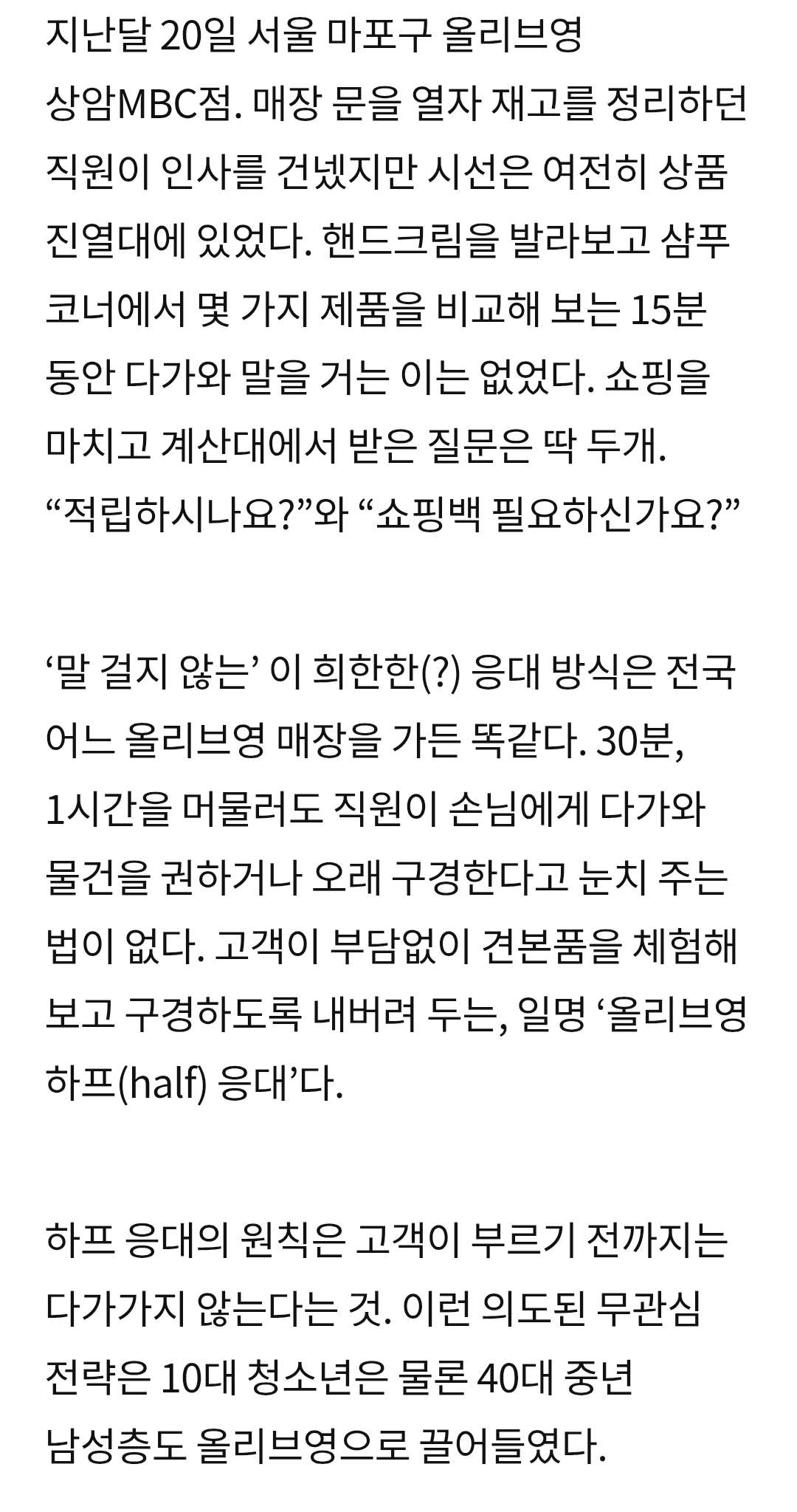 옷가게든 화장품가게든 빤히 쳐다보고 있으면 부담스러워서 안들어가거나 금방 나오게 되는 사람으로서는 노선 잘 정한 것 같음