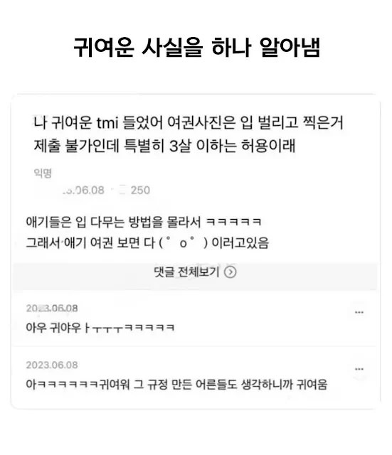 [스크랩] [흥미돋]3살 이하 아기만 가능한 여권 사진 작성자flflf|작성시간25.12.11|조회수88,122 목록 댓글 32 글자크기 작게가 글자크기 크게가 다음검색 스크랩 원문 : 도탁스 (DOTAX) 현재 게시글 추가 기능 열기 북마크 공유하기 신고 센터로 신고 댓글 댓글 32 댓글쓰기 답글쓰기 댓글 리스트 작성자아 맞다 영양제 먹었나? | 작성시간 25.12.11 나도 검색해봤는데 애들 뎌~ 이러고있네 기엽네 ㅋㅋㅋ 작성자고양이토끼갱얼쥐 | 작성시간 25.12.11 예시 사진도 다 보여줘 작성자샐러드먹는사자 | 작성시간 25.12.11 여기보세요 ~~!!‘ ㅇ ’ .? 작성자강국용 | 작성시간 25.12.11 너무…너무 귀엽겠다 작성자나건드리지마 | 작성시간 25.12.11 ㅋㅋㅋㅋㅋㅋㅋㅋㅋㅋㅋㅋㅋㄱㅇㅇ 댓글 전체보기