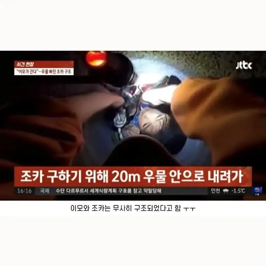 작성자후라시베리 작성시간 25.12.11 와 애기 20미터 밑에 떨어졌는데 산거야? 천만다행이구먼. 그리고 저런 이모 있어서 부럽가