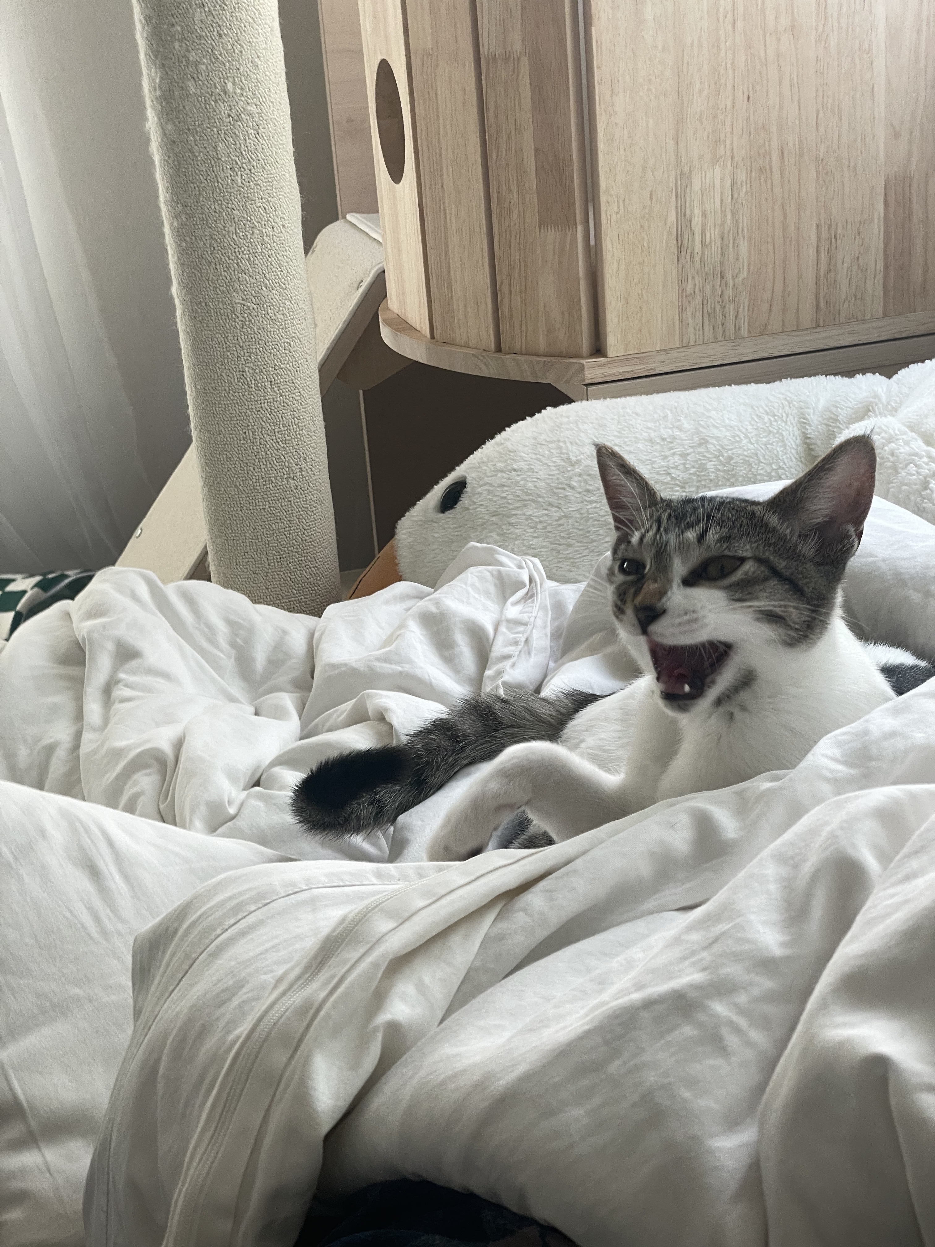 캣타워 설치 기다리는 중