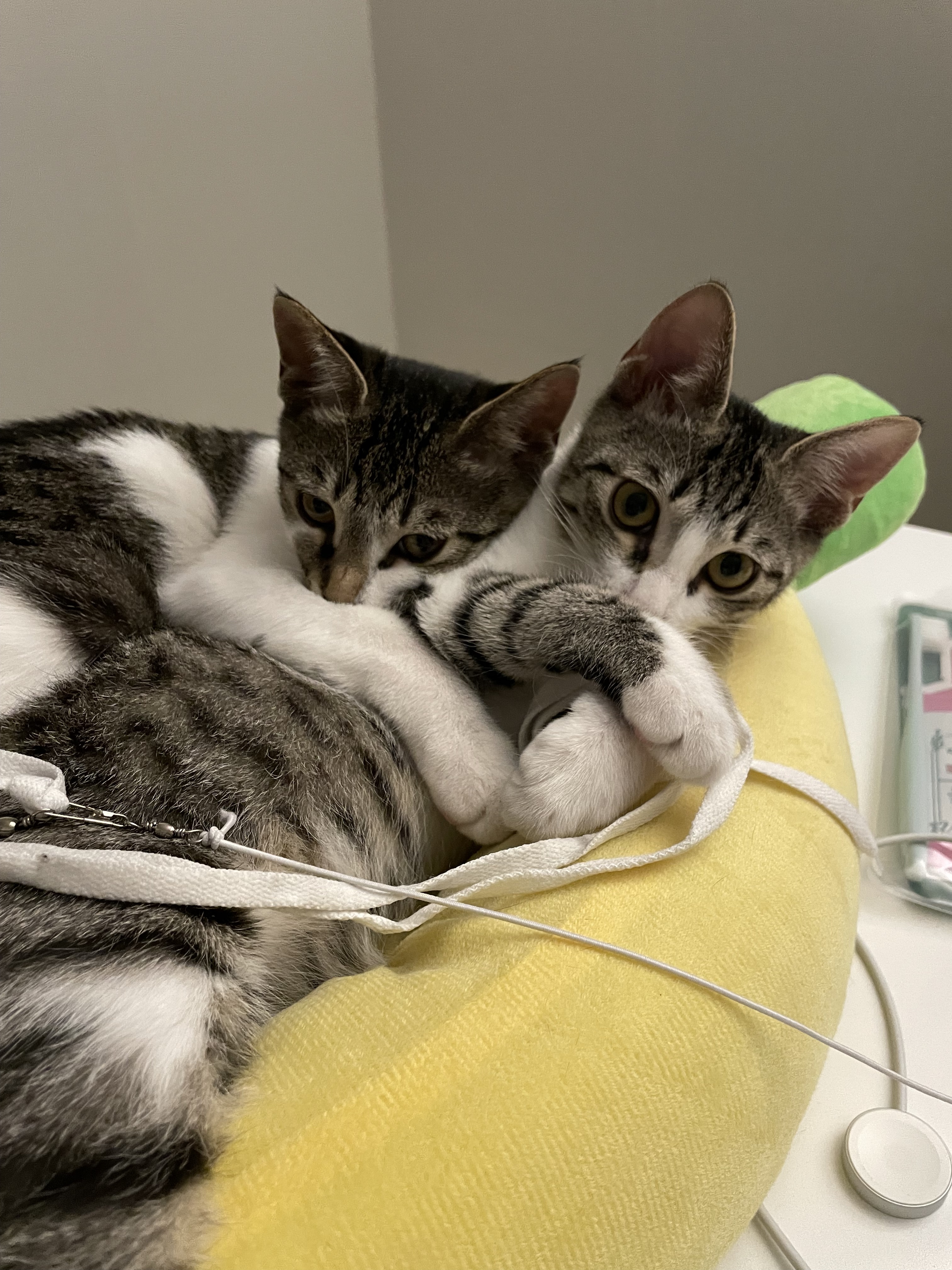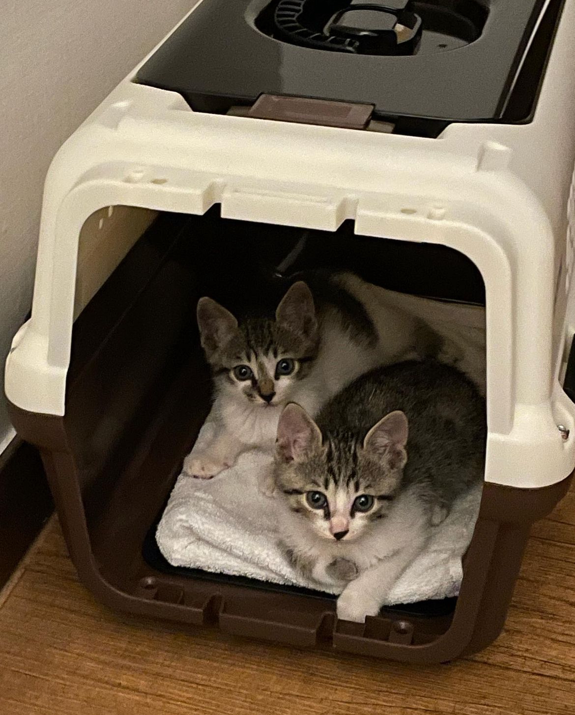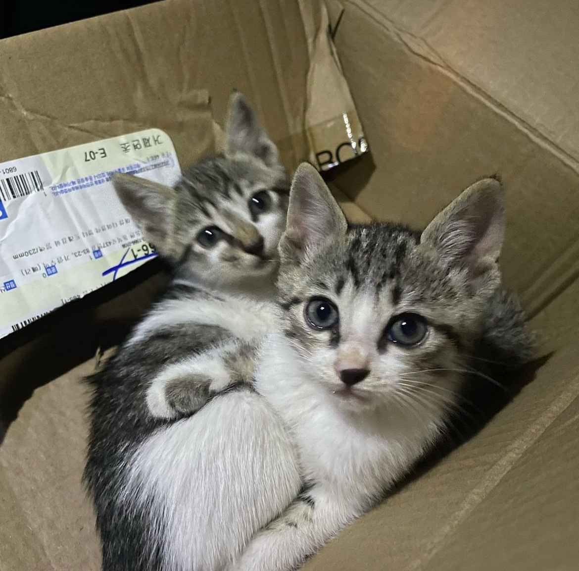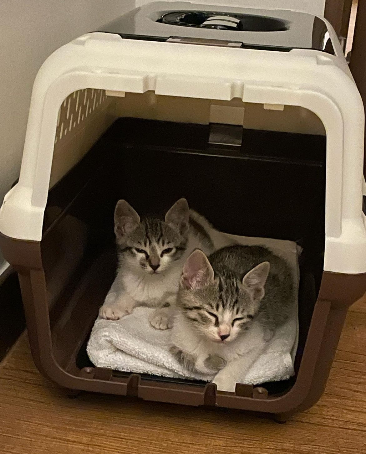 한마리만 데려오려다가 딱 붙어있는거 보고 둘다 차에 태운..