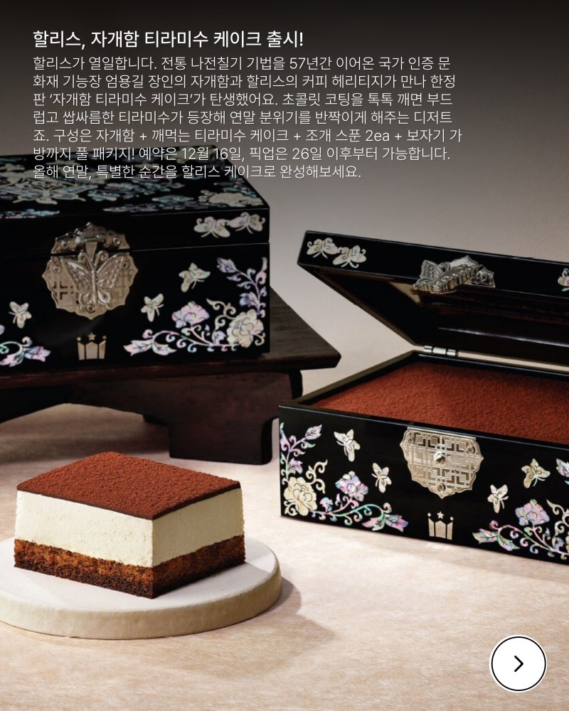 작성자마이룸프로텍터 작성시간 25.12.17 할리스 좋다 요즘 자개 소비하는 사람이 없으니까 문화재 기능장들은 설 곳이 없는데 이런 식으로 콜라보하는 아이디어 진짜 좋은 것 같아.. 그리고 원래 자개는 더 비싼 게 맞아ㅠㅠ 원재료부터 달라서 더 싸게 팔 수 있는거고