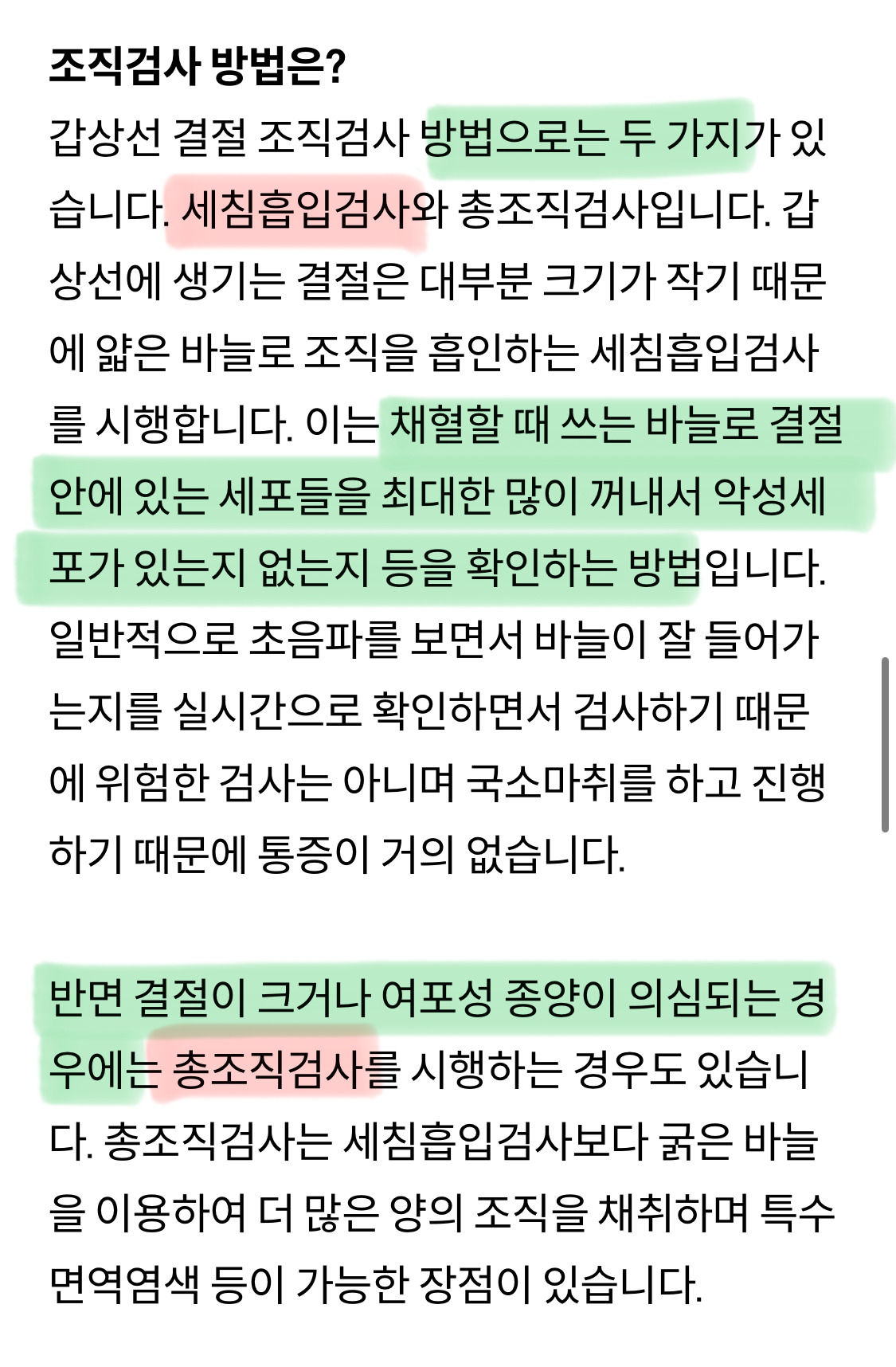 [흥미돋]갑상선 조직검사 작성자(본인닉네임).|작성시간25.12.11|조회수13,682 목록 댓글 33 글자크기 작게가 글자크기 크게가 출처: https://news.hidoc.co.kr/news/articleView.html?idxno=31050 다음검색 현재 게시글 추가 기능 열기 북마크 공유하기 신고 센터로 신고 댓글 댓글 33 댓글쓰기 답글쓰기 댓글 리스트 작성자고민시한소희신예은 | 작성시간 25.12.11 안아팠는데 뻐근하고 느낌 이상했음.. 작성자민트초코칩이세상을지배한다 | 작성시간 25.12.11 총검사 진짜 총맞는느낌… 아픔보다는 충격적이었어 ㅋㅋㅋ 그래도 할만혀 작성자나 지금 | 작성시간 25.12.11 아 나 이거하러가야하는데 ㅜ 무서워... 작성자어제의집 | 작성시간 25.12.11 아 이거 진짜 기분 구려...아프기보단 그 몇분을 견디기 힘들어 작성자흙표범 | 작성시간 25.12.12 안아픈데 하고나먄 기분이 안좋아짐.. 댓글 전체보기