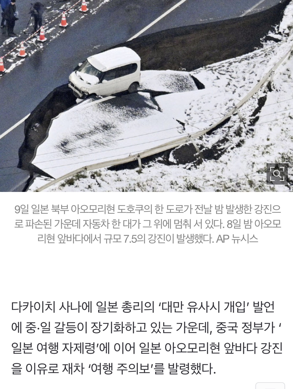 [여시뉴스데스크]中 “일본 방문 피해라”…지진 이유로 ‘여행 주의보’ 발령 작성자Rooose|작성시간25.12.11|조회수7,808 목록 댓글 7 글자크기 작게가 글자크기 크게가 출처: https://n.news.naver.com/article/021/0002756502?sid=104 다음검색 현재 게시글 추가 기능 열기 북마크 공유하기 신고 센터로 신고 댓글 댓글 7 댓글쓰기 답글쓰기 댓글 리스트 작성자캔유필마 할트비트코인? | 작성시간 25.12.11 빨리 더큰거 와라 작성자벆뚜벆뚜 | 작성시간 25.12.11 작성자멍멍댕댕 | 작성시간 25.12.11 빨리 오쇼 작성자진짜격하게싫어하는사람 | 작성시간 25.12.11 한국일빠들은 제발 갔으면 좋겠어..진짜 사랑한다면 죽음도 함께해야되는거잖아........ 함께해줘 끝까지 작성자저래도그래도 | 작성시간 25.12.11 일본러버들 지금이야 빨리 가주겠어?? 사랑으로 지진을 막아주자 ㅠ 댓글 전체보기