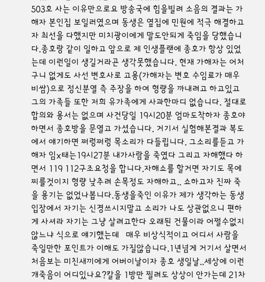 층간소음으로 일가족 살해한사건인데 여기도 처음나올때