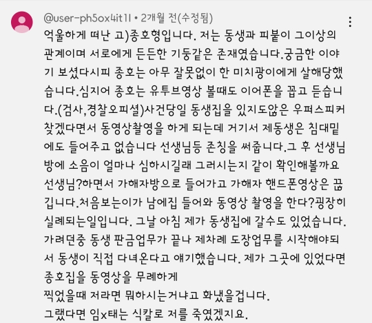 오죽했으면 그랬겠냐며 살인자옹호반응이 나옴