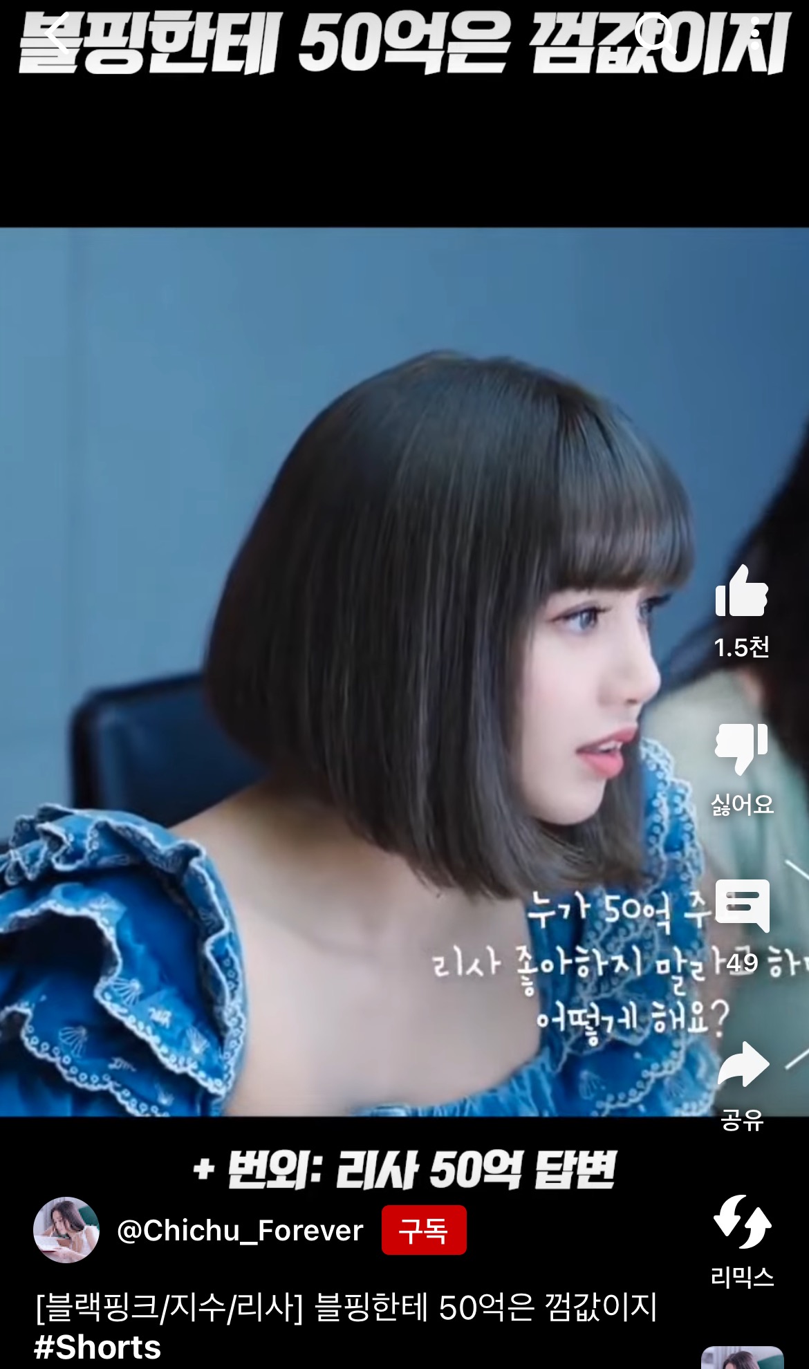 누가 50억 주고 리사 좋아하지 말라고하면 어떡해요?