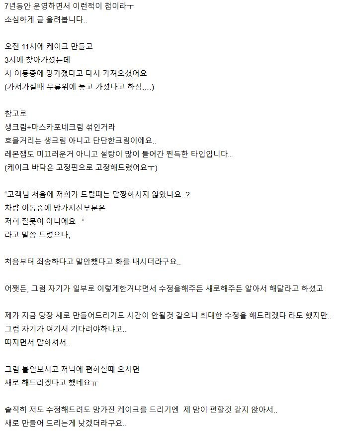 작성자두통이일상 작성시간 25.12.20 나도 차 이동중에 케이크 망가진적 있는데 가서 다시 해달라 생각 못해봄... 안타깝지만 이동중엔 어쨌든 내 과실인걸..ㅜ 고쳐주면 고마운거고