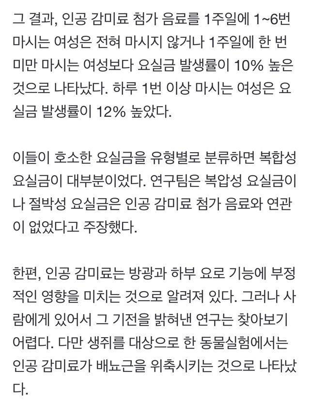작성자냥친자 작성시간 25.12.12 나 크리스탈라이트때부터해서 제로10년 먹었는데 화장실도 자주가고 뭔가 배앓이같은게 약하게 계속 있어서 혹시 하고 끊어봤는데 제로 끊고 배앓이 없어짐.... 지금은 차라리 먹을 일 있음 그냥 콜라나 그냥을 먹어..