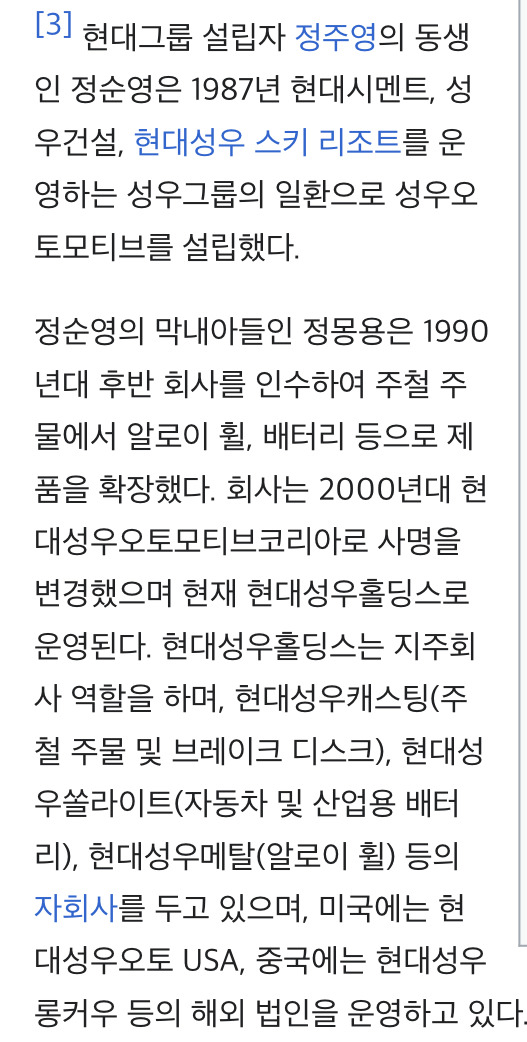 넷째동생 정세영은 현대지동차에서