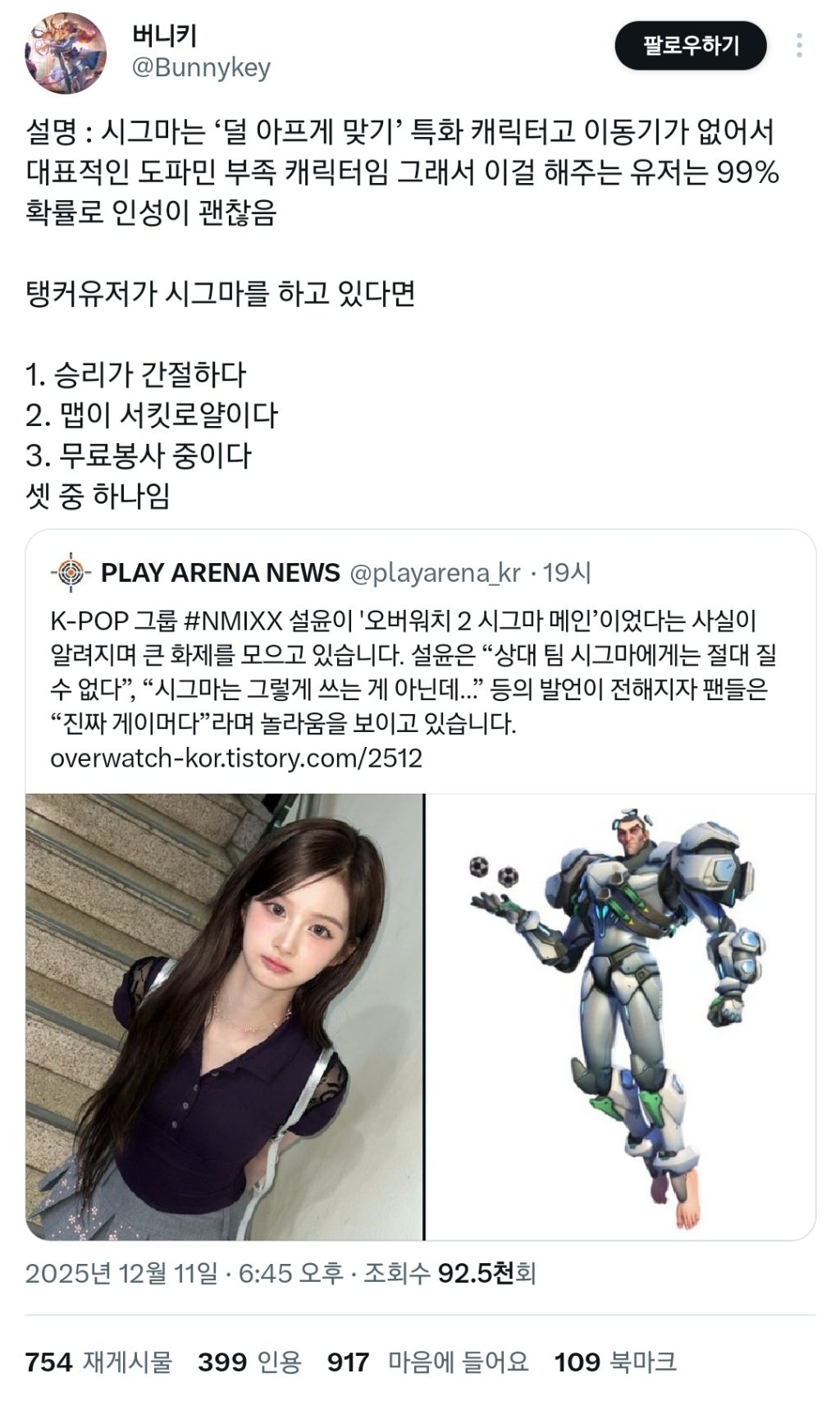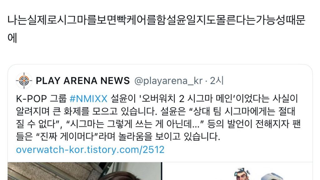 평소 오버워치에서 시그마라는 캐릭터를 주로 한다는 설윤...